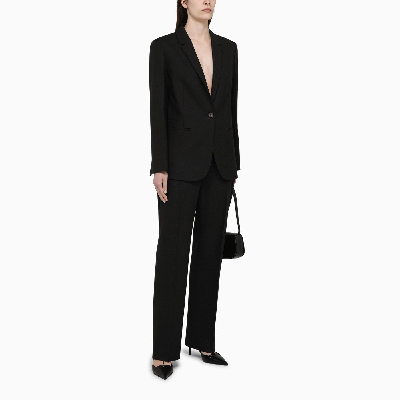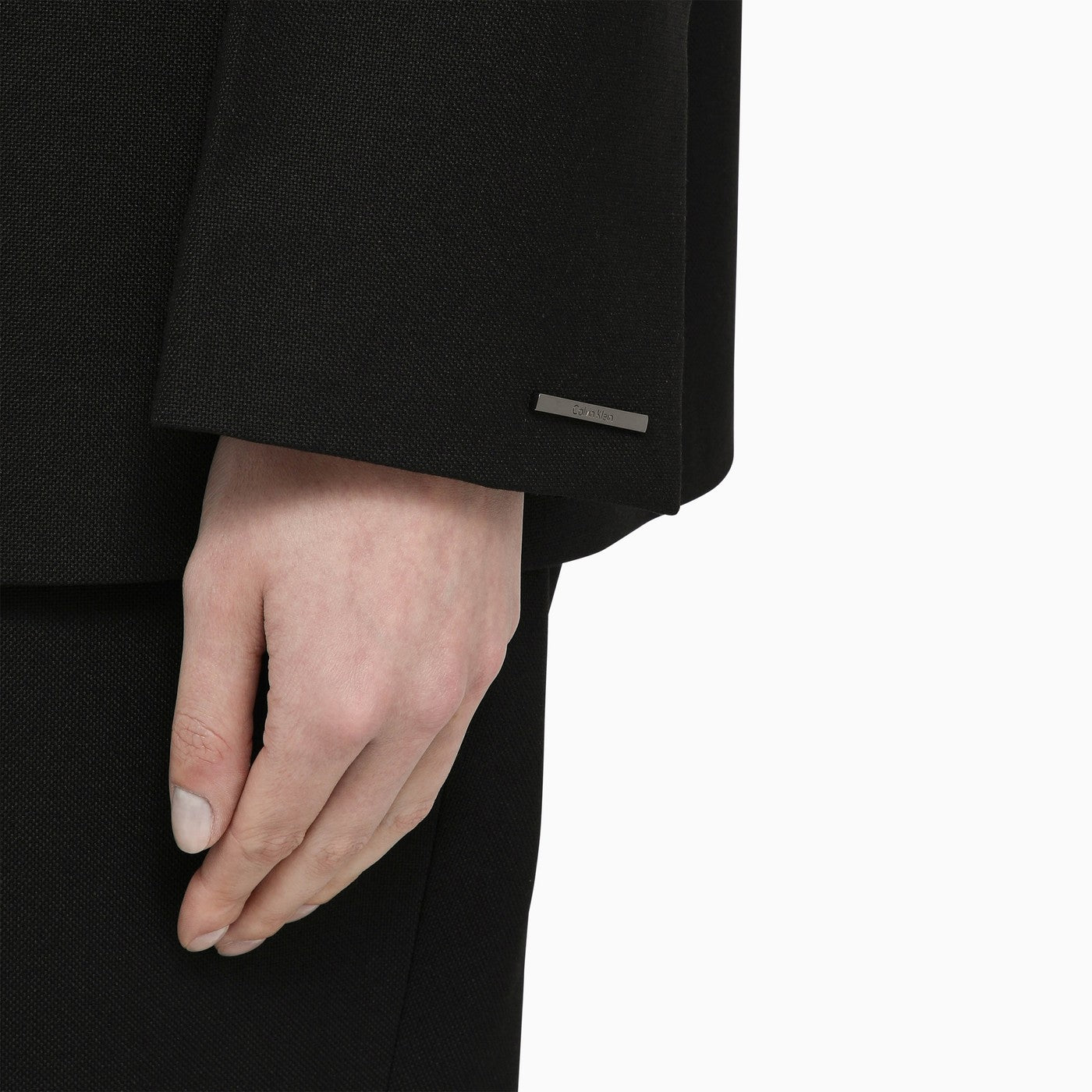 Black viscose-blend single-breasted jacket from Calvin Klein featuring classic lapels, long sleeves with logo plaque, two welt pockets on the front, back vent and front button fastening.