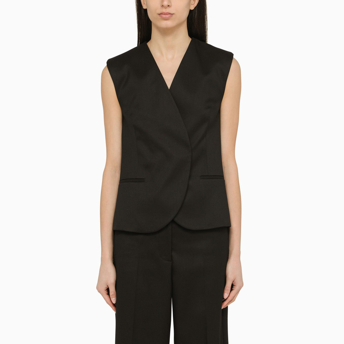 Black viscose blend waistcoat by Calvin Klein features a concealed front fastening, a V-neck and two welt pockets on the front.