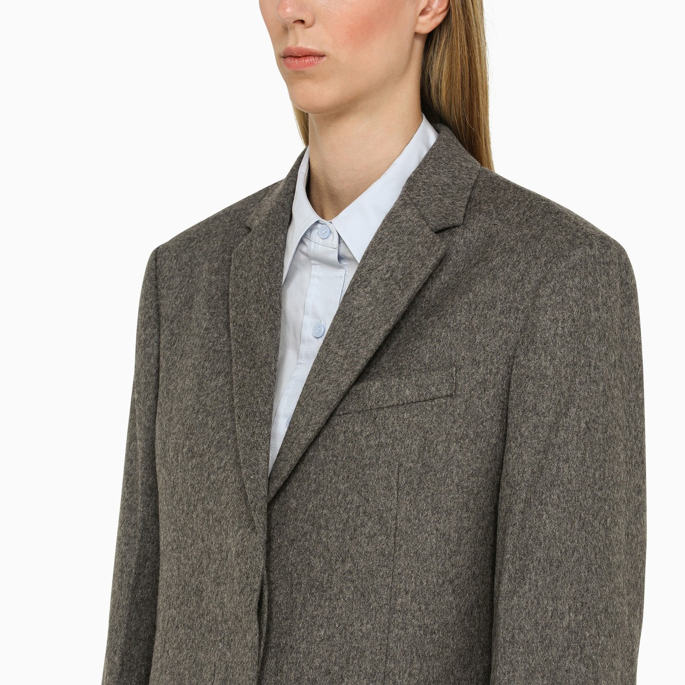 Grey recycled wool tailored jacket from Calvin Klein featuring a linear design, long sleeves and three front welt pockets.