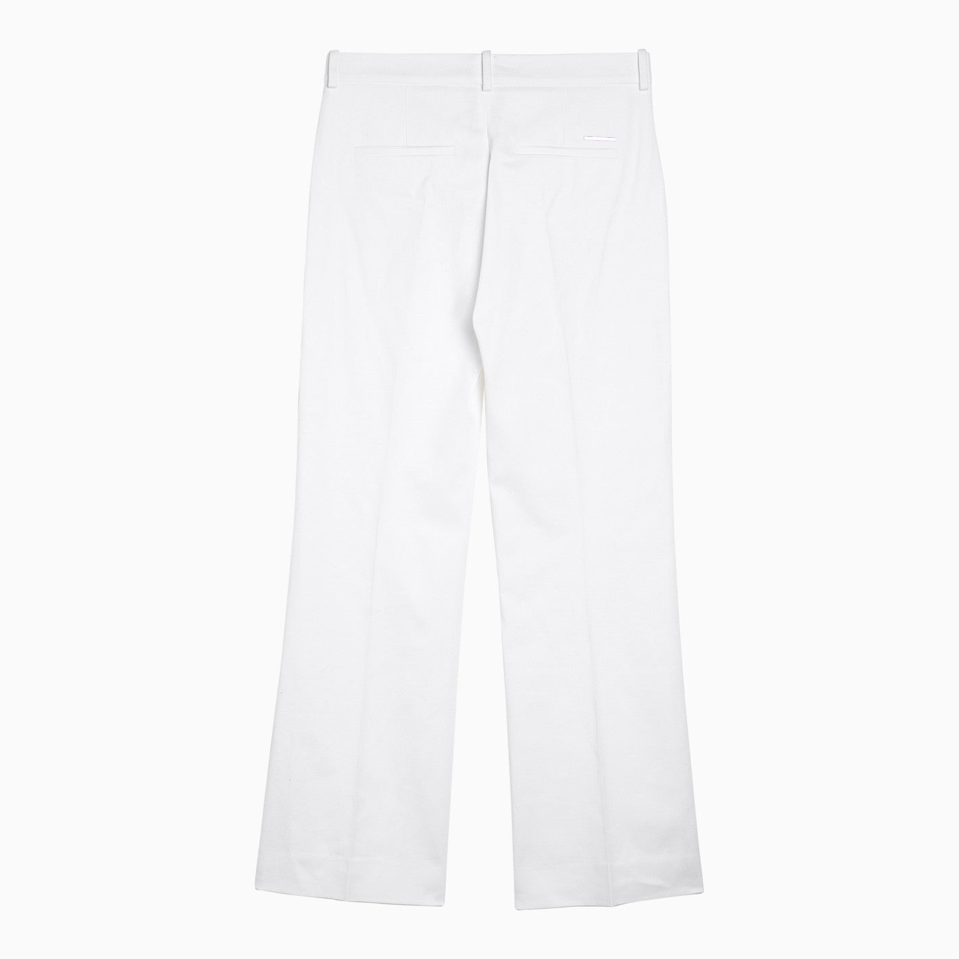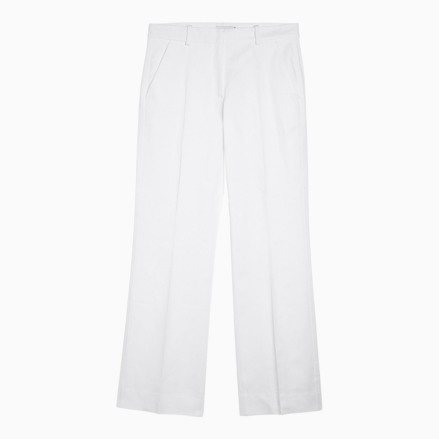 White viscose blend regular trousers from Calvin Klein featuring a front zip and hook fastening, belt loops, two side welt pockets, two back welt pockets and a logo plaque on the back.
