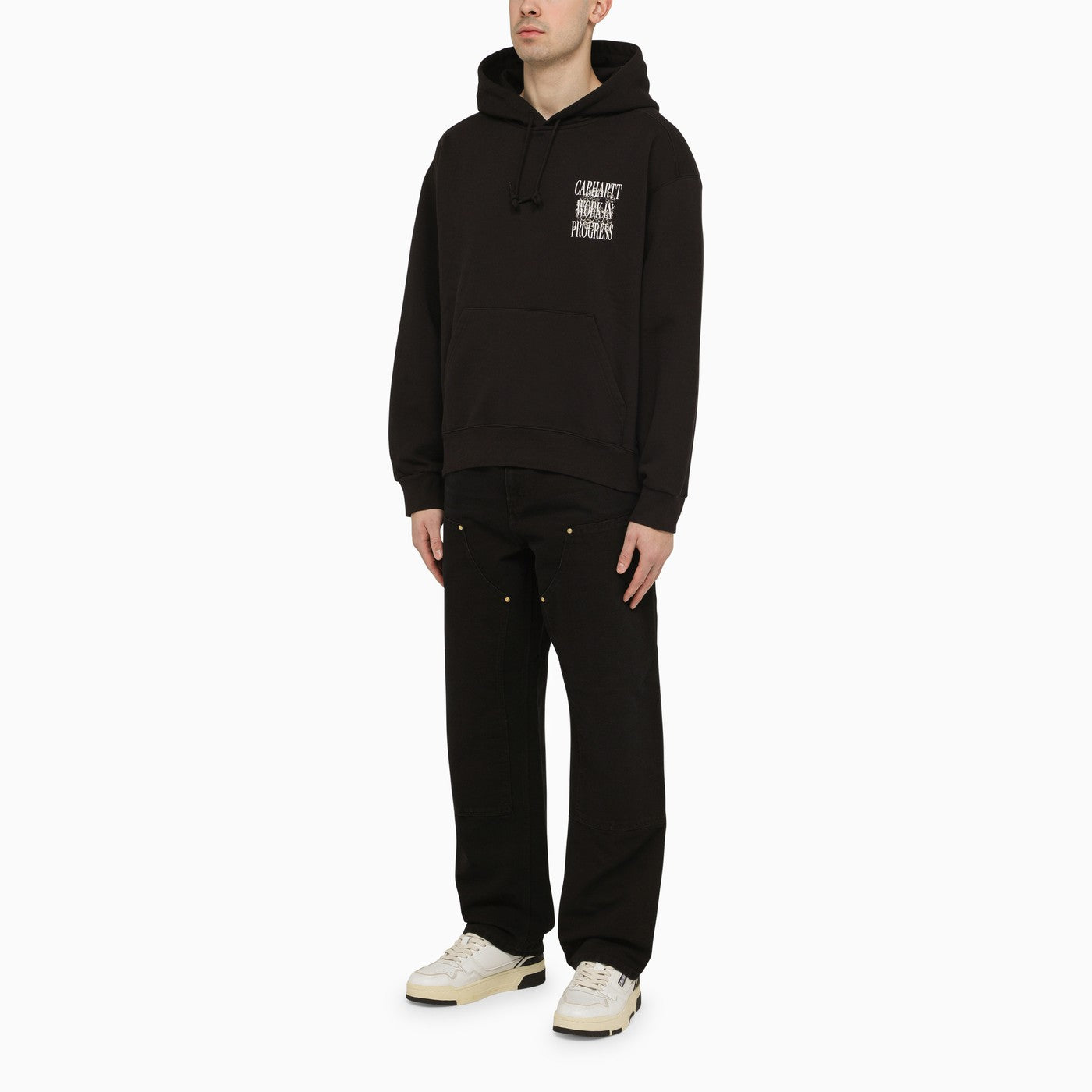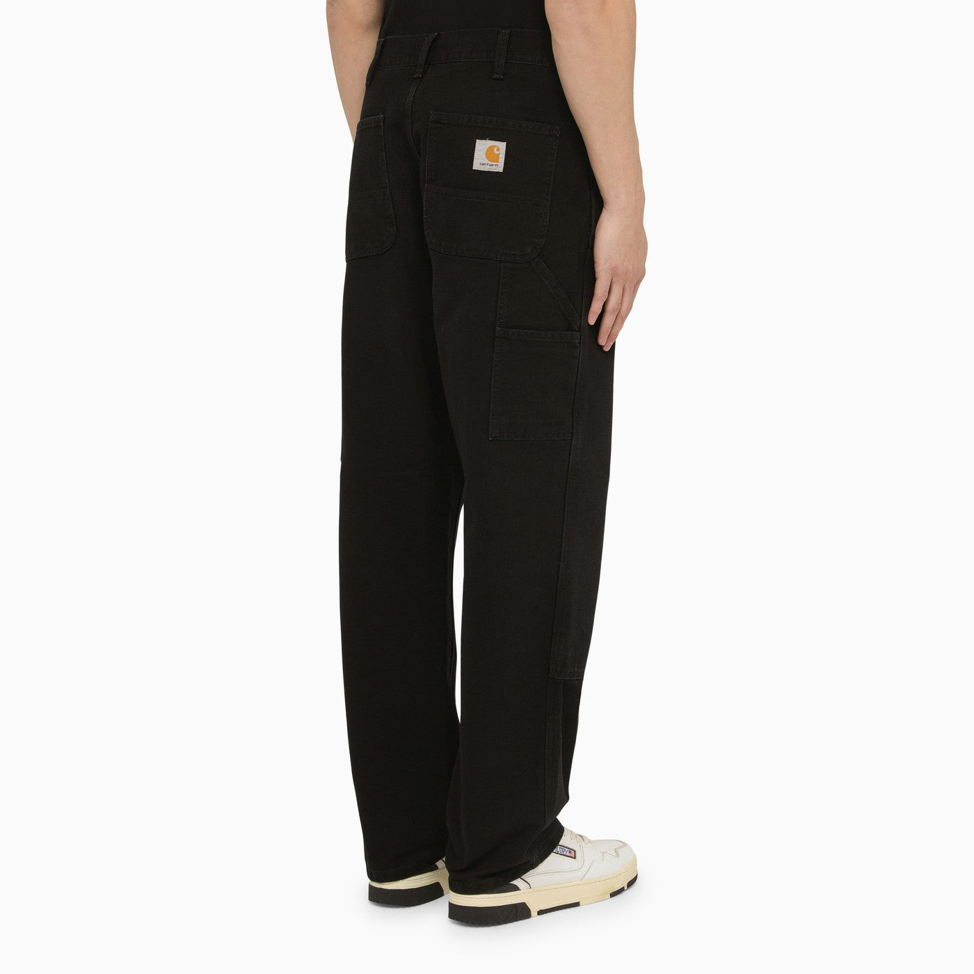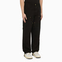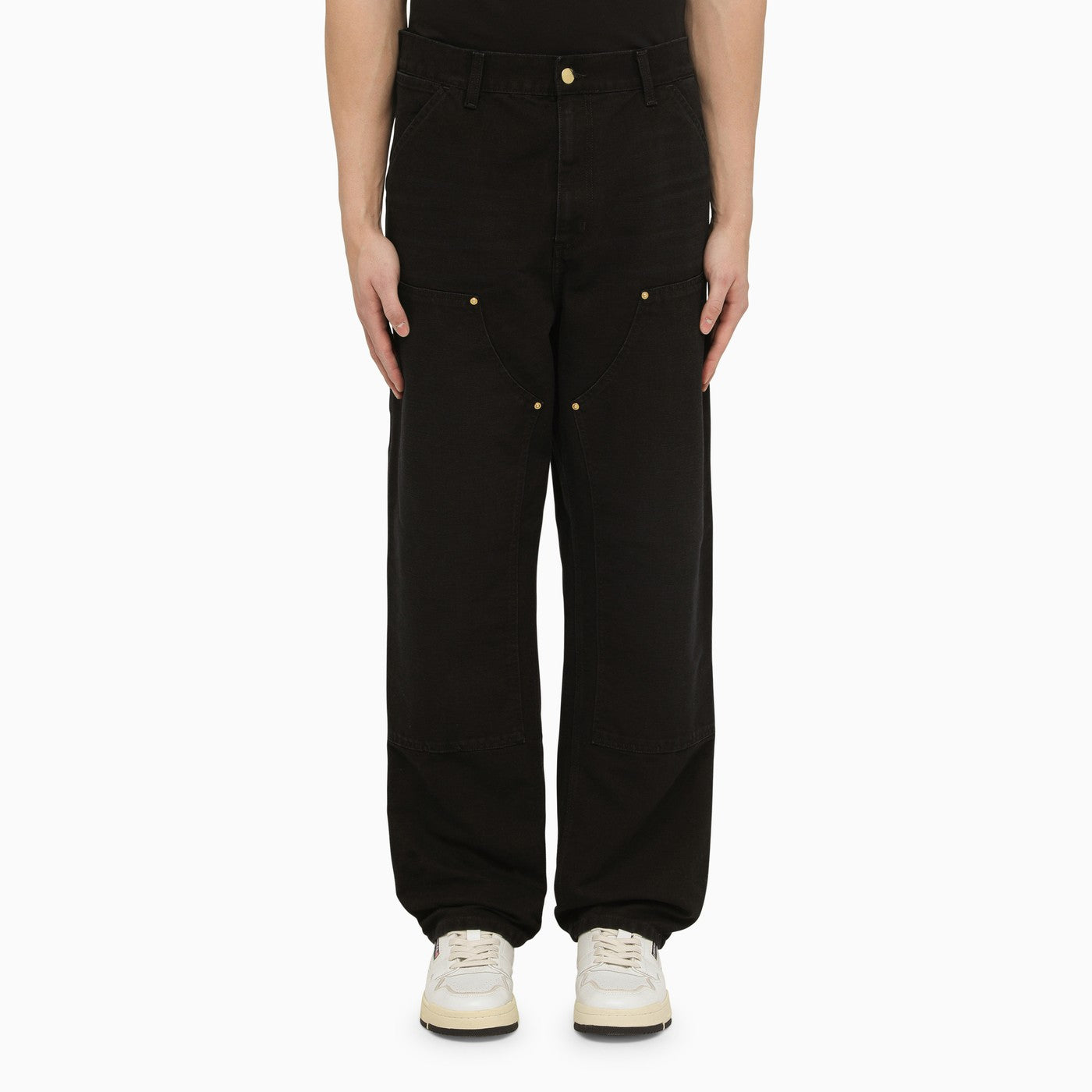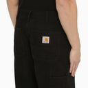 Black cotton canvas trousers by Carhartt WIP, featuring belt loops at waist, pockets on front, back and sides and logo patch on back.