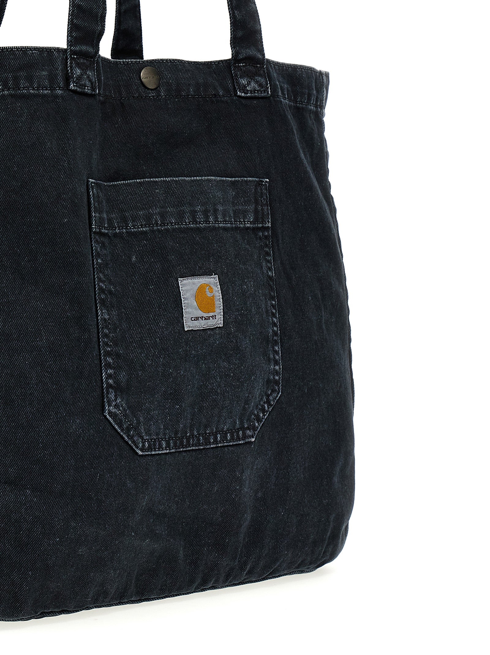 'Garrison' cotton twill shopping bag with abrasive stone wash, snap button closure, outer pocket with logo label, double handle.