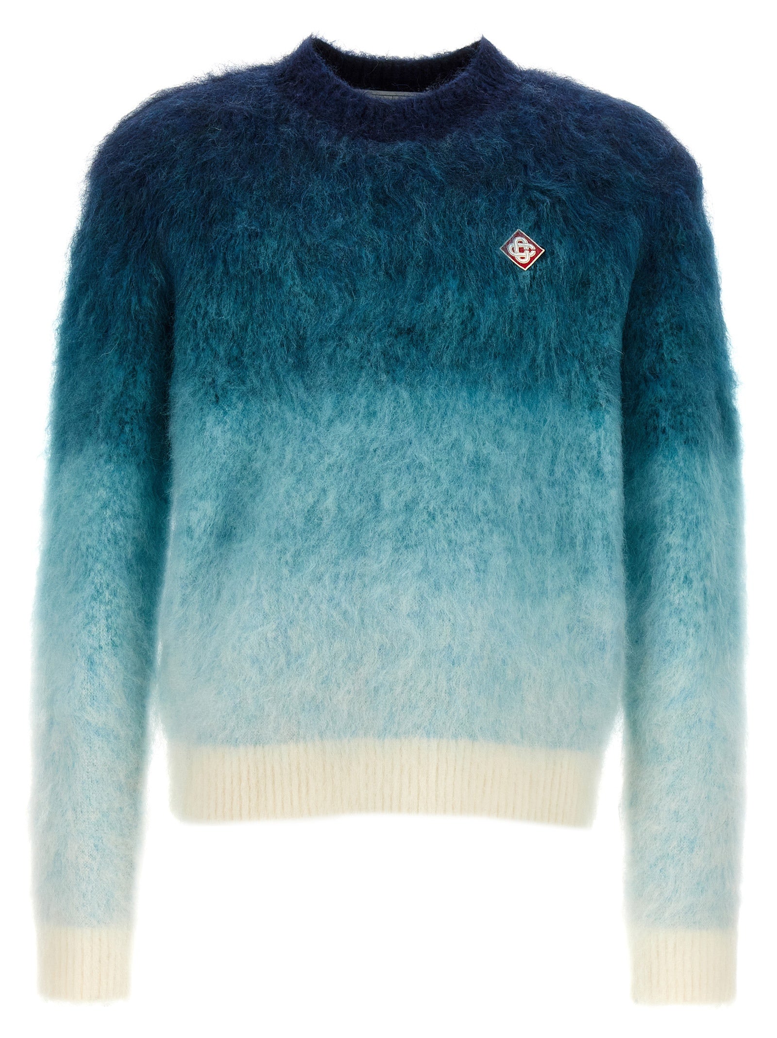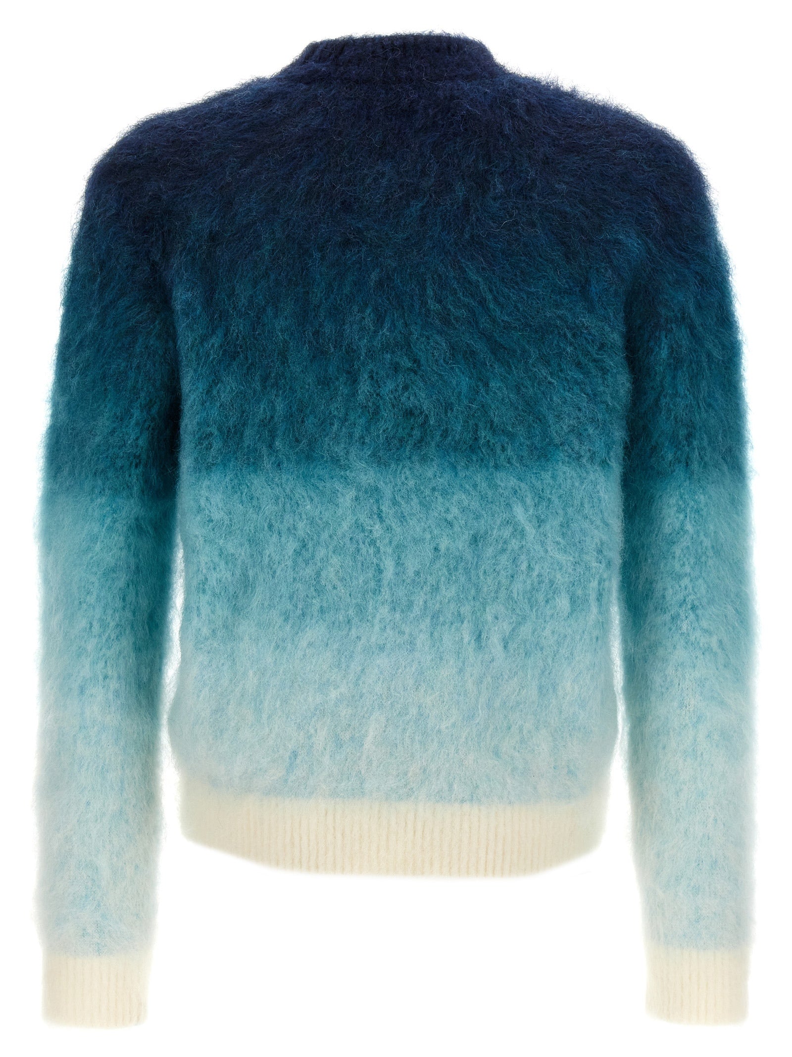 'Midnight Gradient' sweater in gradient mohair blend with crew neck and long cuffed sleeves.