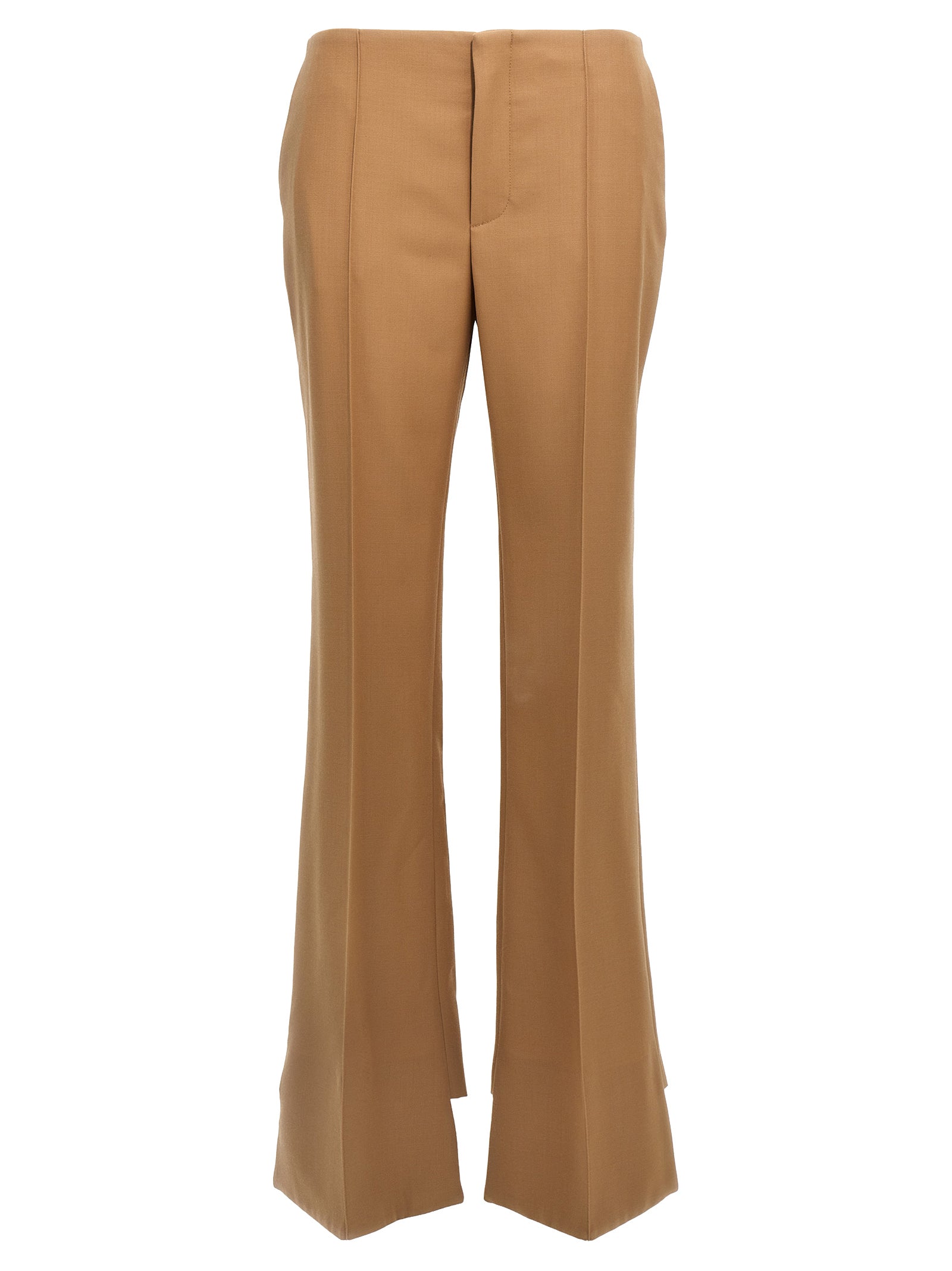 Grain de poudre wool pants, hook and button zip closure, pockets, asymmetrical hem.
