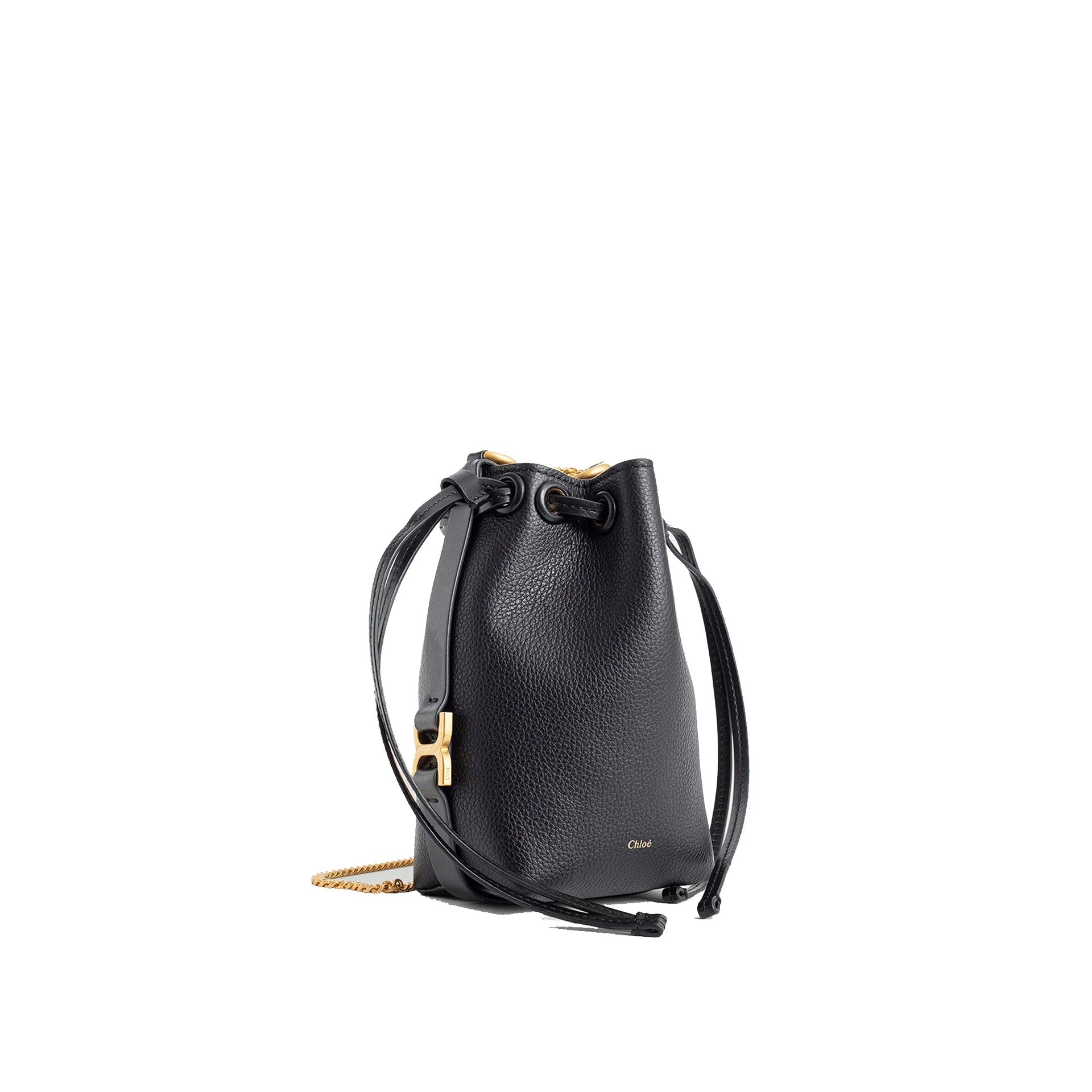 - Composition: 100% calf leather - Textured leather - Detachable shoulder strap - Drawstring closure - Height 18 cm Width 11 cm - Made in Spain -