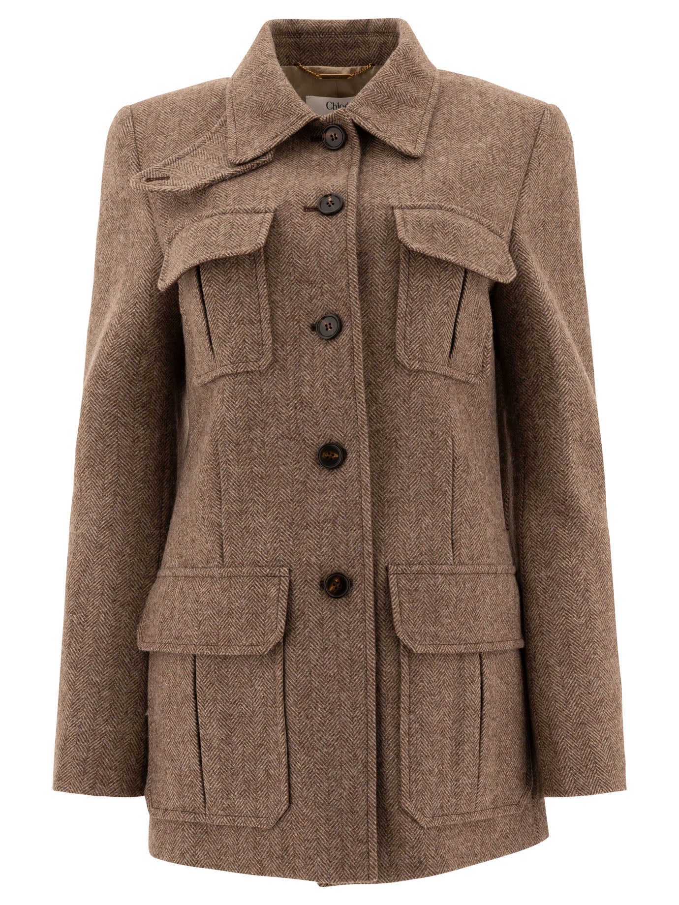 Chloé Long Officer Jacket In Herringbone Boyish Wool