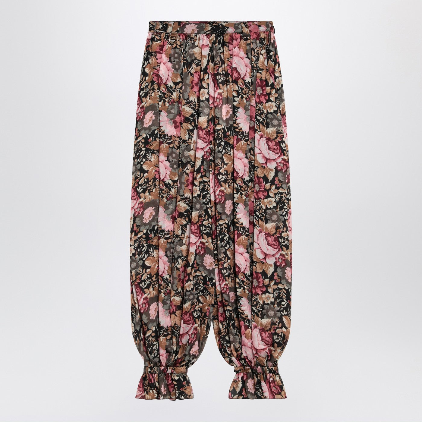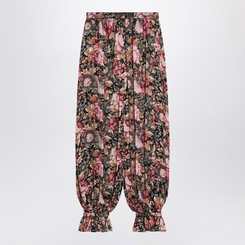 Chloé silk pants with an all-over floral print, featuring two side welt pockets, a logoed metal detail on the front, a high waist, and elasticized ankles.