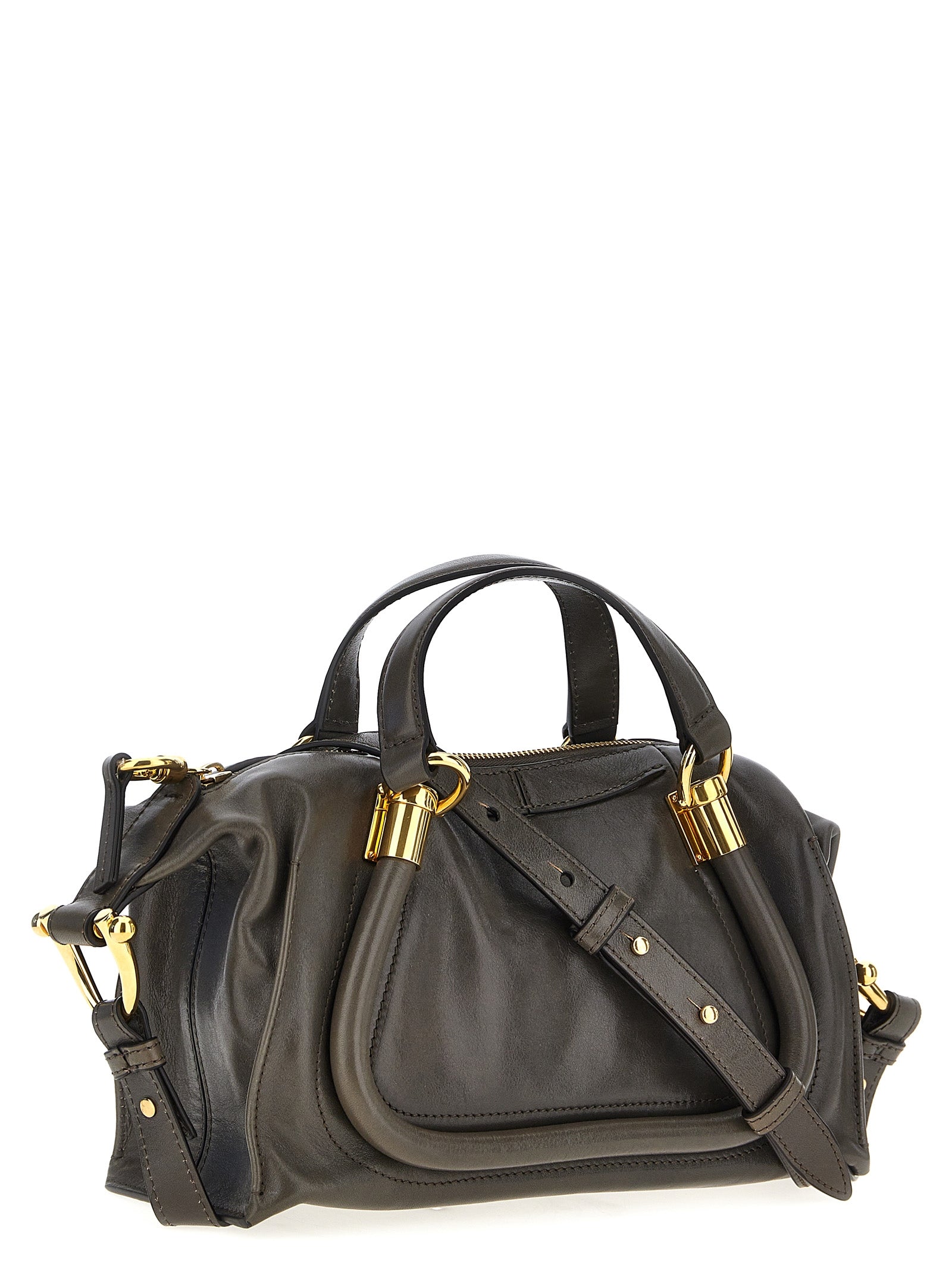 'Small Paraty 24' shiny leather handbag, double handle with gold metal details, zip closure, adjustable and removable shoulder strap.