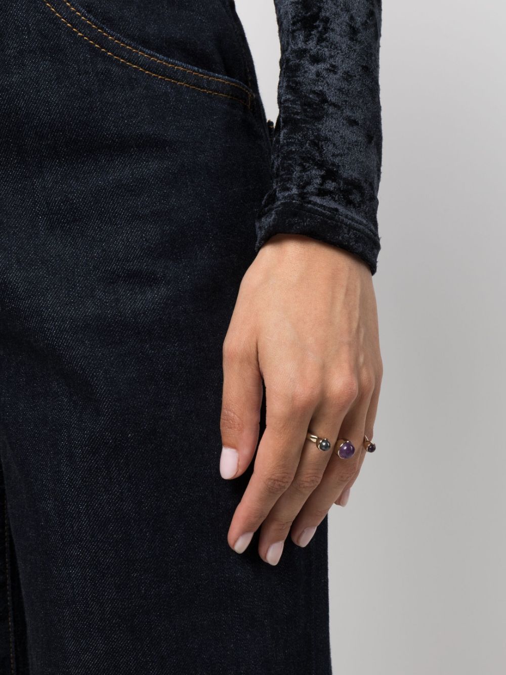 Gold, amethyst, lucid finish, engraved logo, details in precious stones.