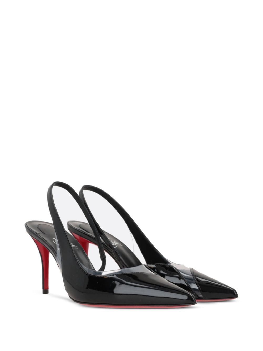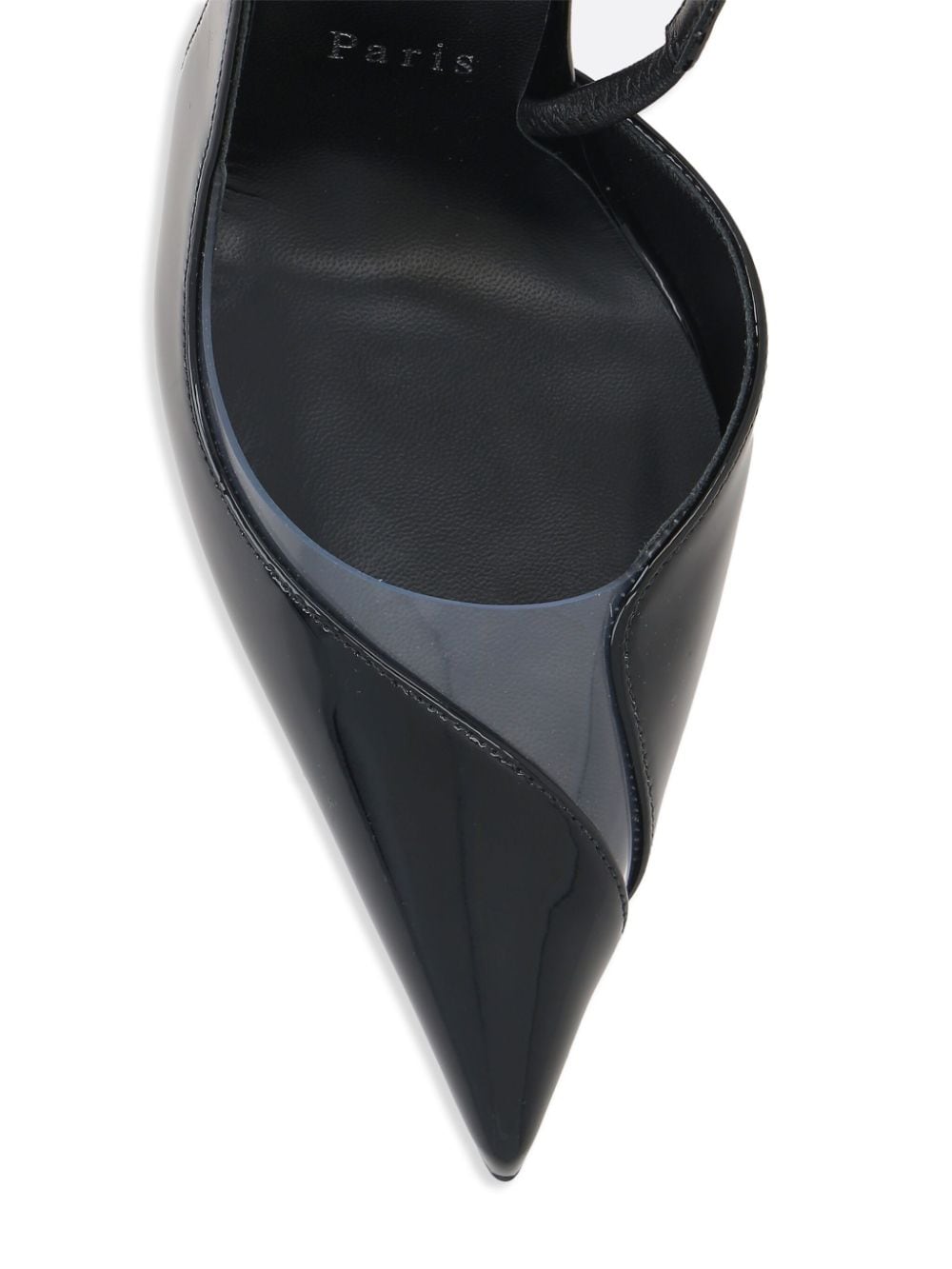 black/red calf leather patent finish pvc panel detail pointed toe slingback strap high stiletto heel branded insole