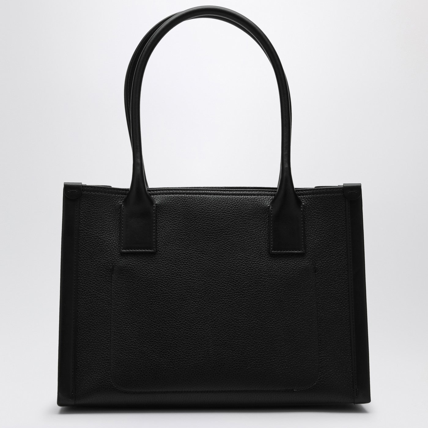 Black leather small tote bag from Christian Louboutin featuring two top handles, a hook-and-eye fastening, an internal zipped pocket, a tone-on-tone front logo and a contrasting red interior.
