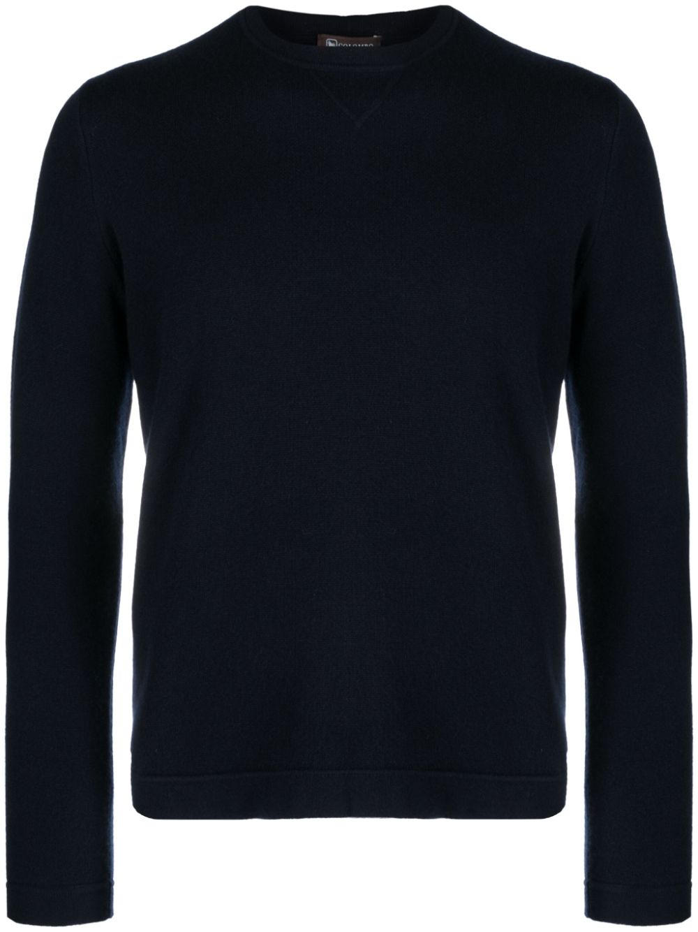 long-sleeve cashmere jumper from COLOMBO featuring navy blue, cashmere, fine knit, crew neck, long sleeves and straight hem.