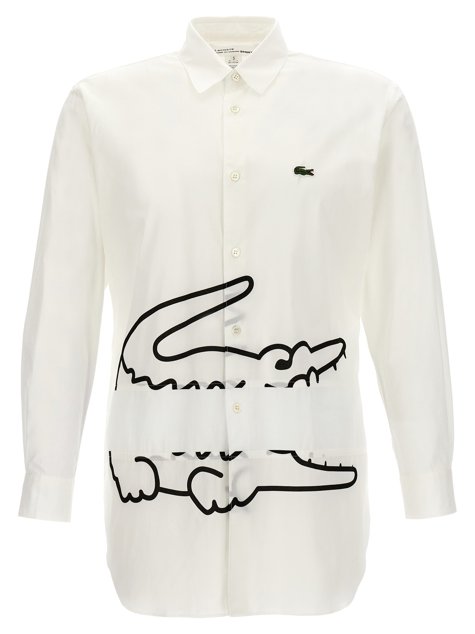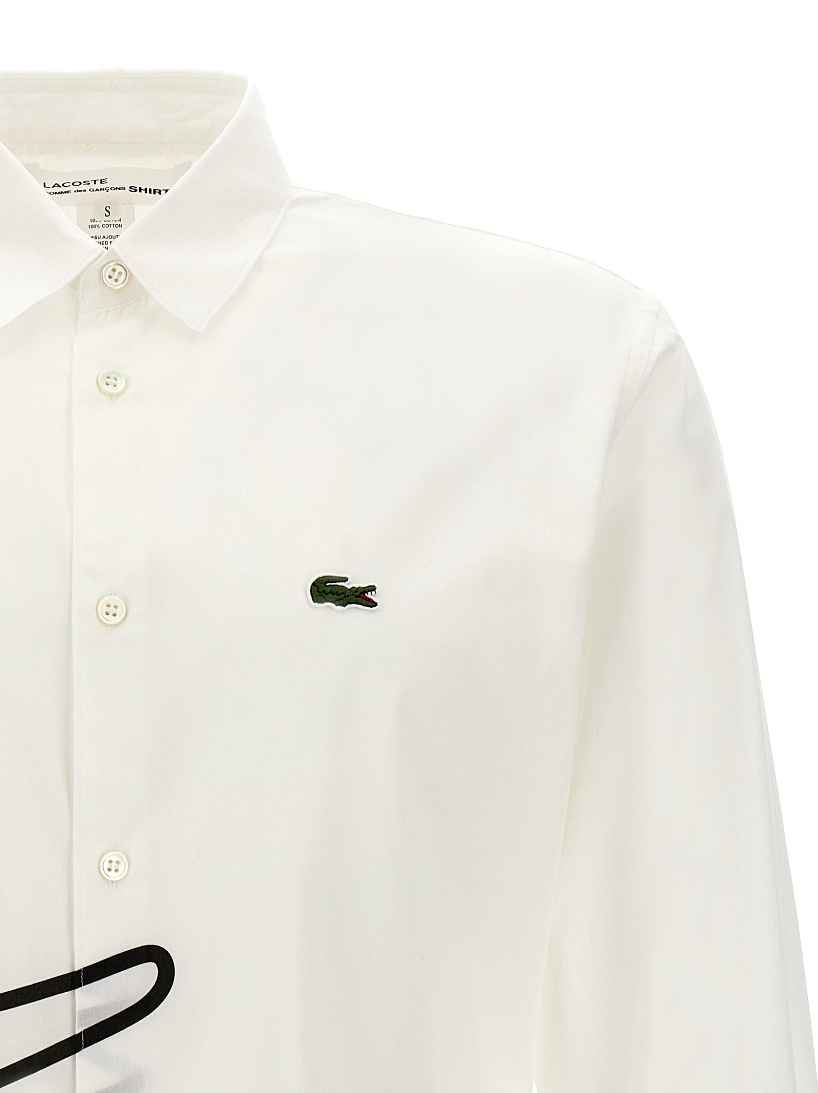 Comme Des Garçons x Lacoste shirt in cotton poplin with button closure, print and logo patch.