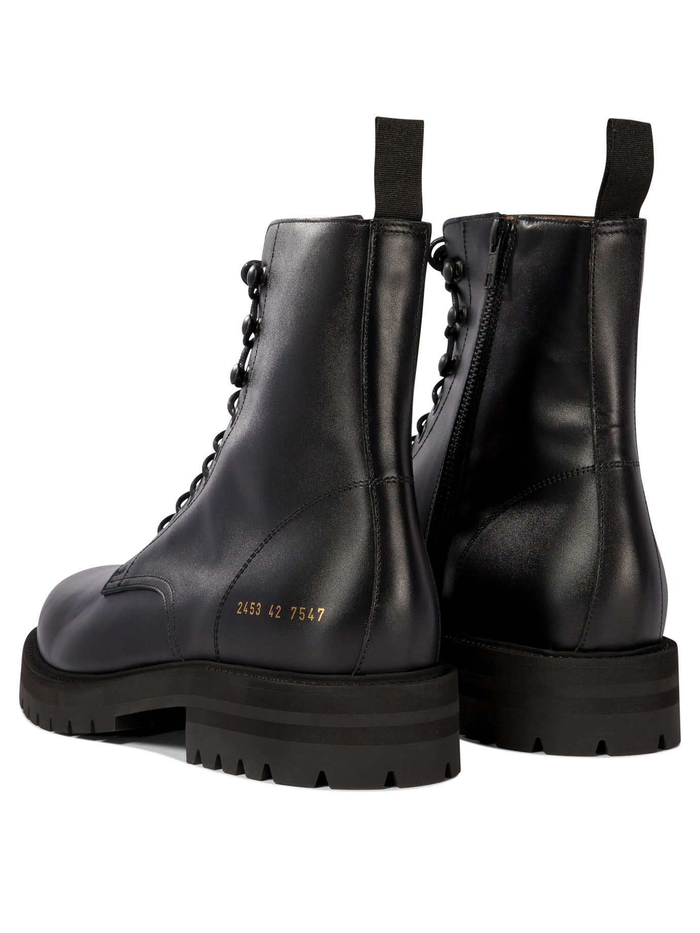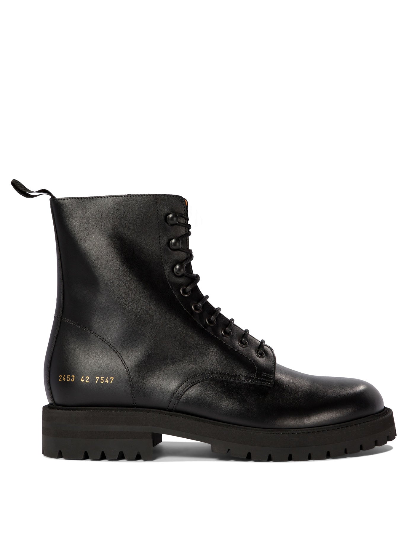 Common Projects' leather amphibians are the epitome of style and functionality for the modern man. Made from high-quality materials, they offer comfort and durability without compromising on refined, minimalist aesthetics. Perfect for those seeking a distinctive and versatile look, these amphibians add a touch of class to any outfit. || - Round toe - Lace-up closure - Gold-tone serial number print on the side - Rear pull-up tab - Two-tone rubber sole || Pair these amphibians with a pair of classic jeans and a leather jacket for a sharp casual look. They can also be worn with chino pants and a turtleneck sweater for a stylish and sophisticated outfit. Perfect for any occasion, from work to leisure.
