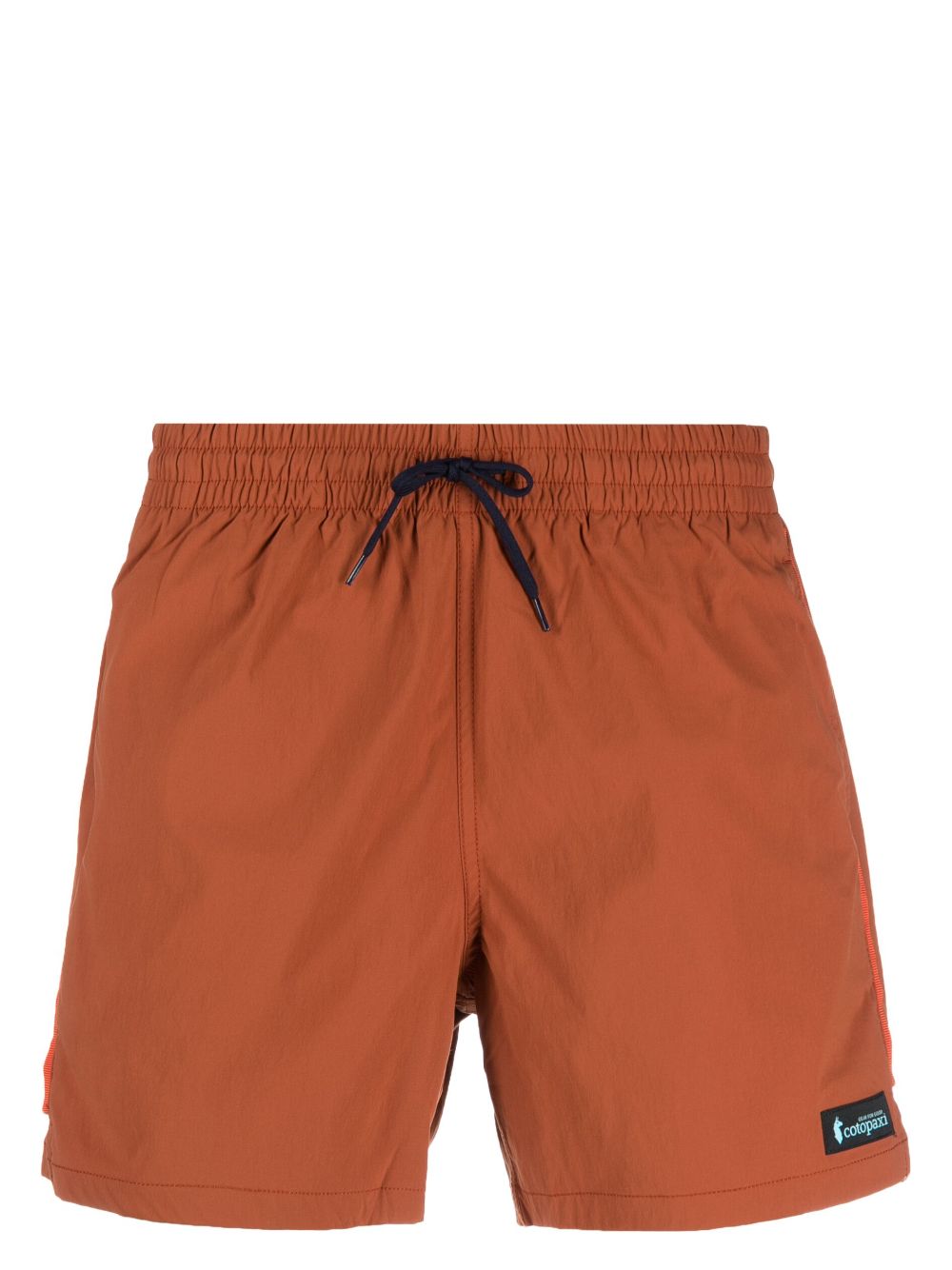 two-tone swim shorts from COTOPAXI featuring dark orange, apricot, recycled nylon blend, logo patch to the front, two-tone design, elasticated waistband, rear flap pocket and drawstring fastening waist. This item is made from at least 50% recycled or upcycled materials. For recycled synthetic clothing products, we highly recommend using a microfibre-catching washing bag to ensure that no microplastics that can pollute water are released in the process.. Learn more about what makes a product Conscious on our Conscious Criteria page. Be mindful to try on swimwear over your own garments..