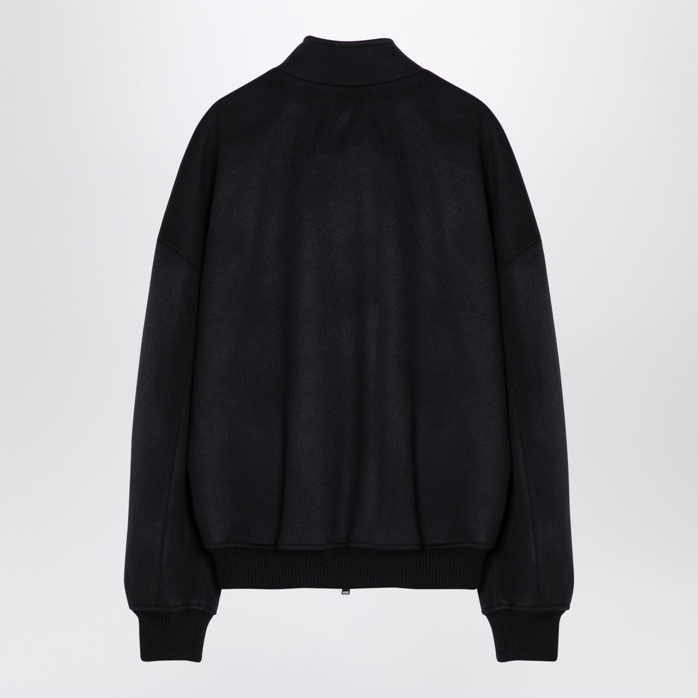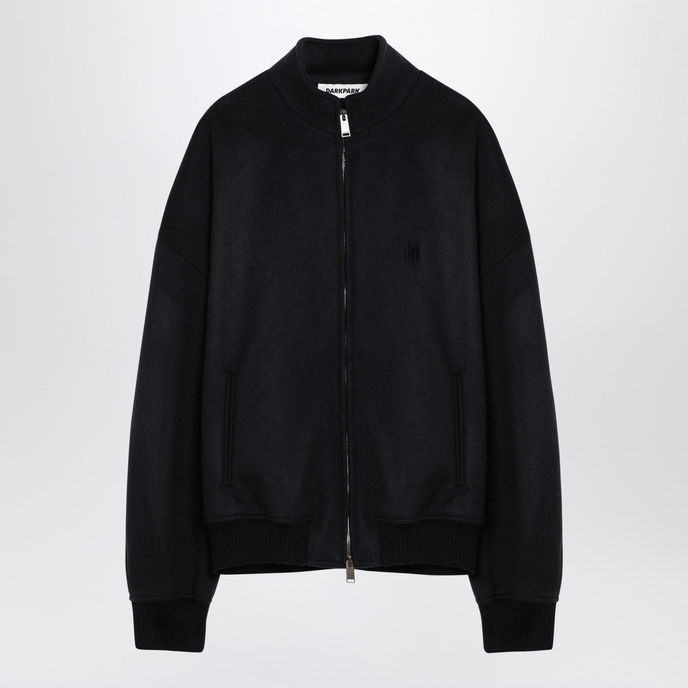 Bomber jacket by Darkpark in black wool blend, featuring a high collar, a front zip fastening, front welt pockets, logo embroidery on the chest, ribbed knit cuffs and hem.
