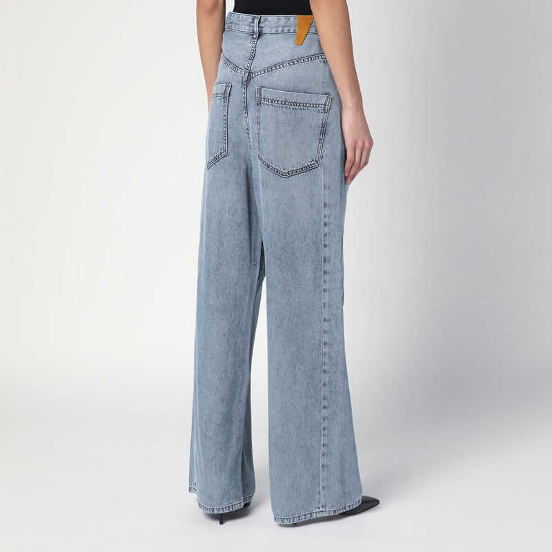 Wide jeans by DARKPARK in blue cotton denim with a faded effect, featuring an asymmetrical front closure, belt loops, five classic pockets, and a back logo patch.