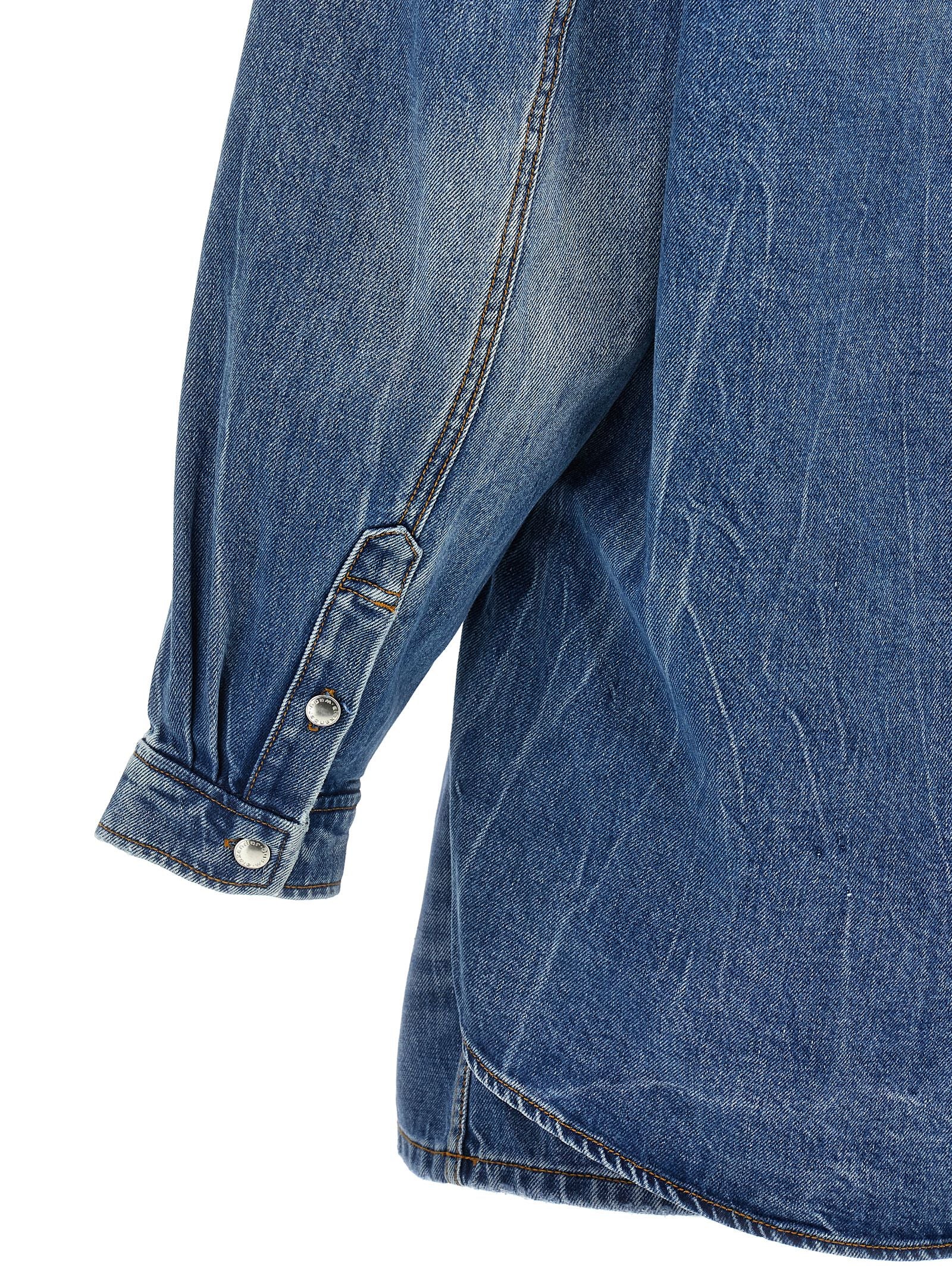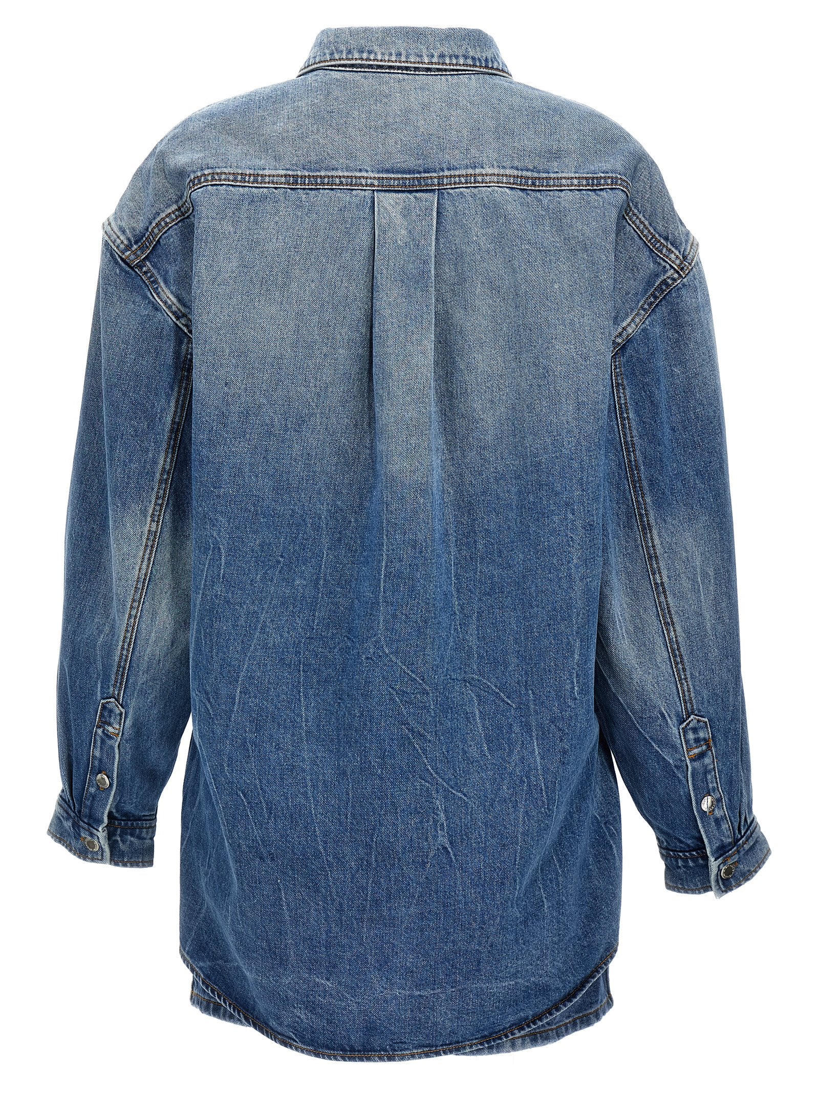'Prestyle Mini Shirt' cotton denim dress with front zip and button closure, pockets, cut-out details at the waist, long cuffed sleeves.