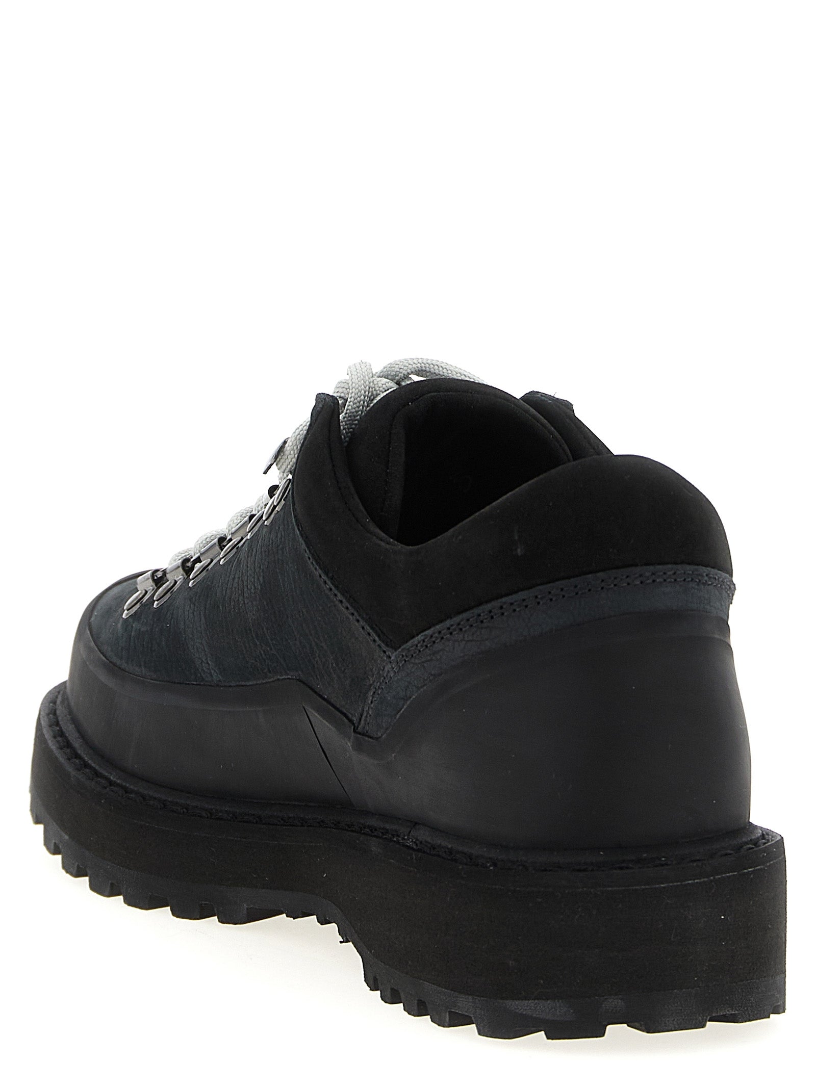 'Cornaro Gomma' ankle boots in nappa leather treated with wax and finished with wide rubber band, low model, lace-up closure, tonal hardware, rubber sole.