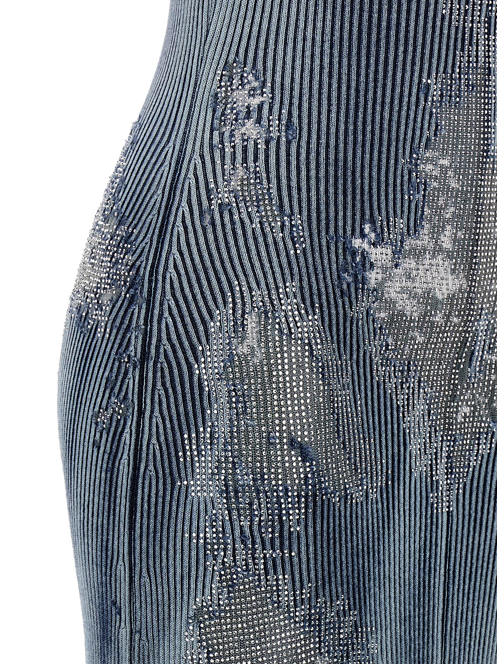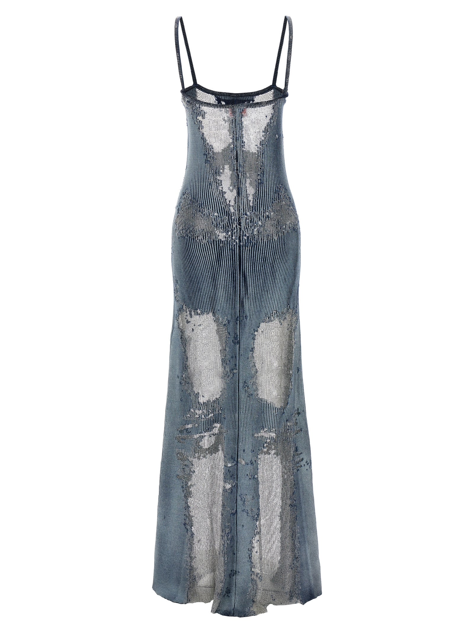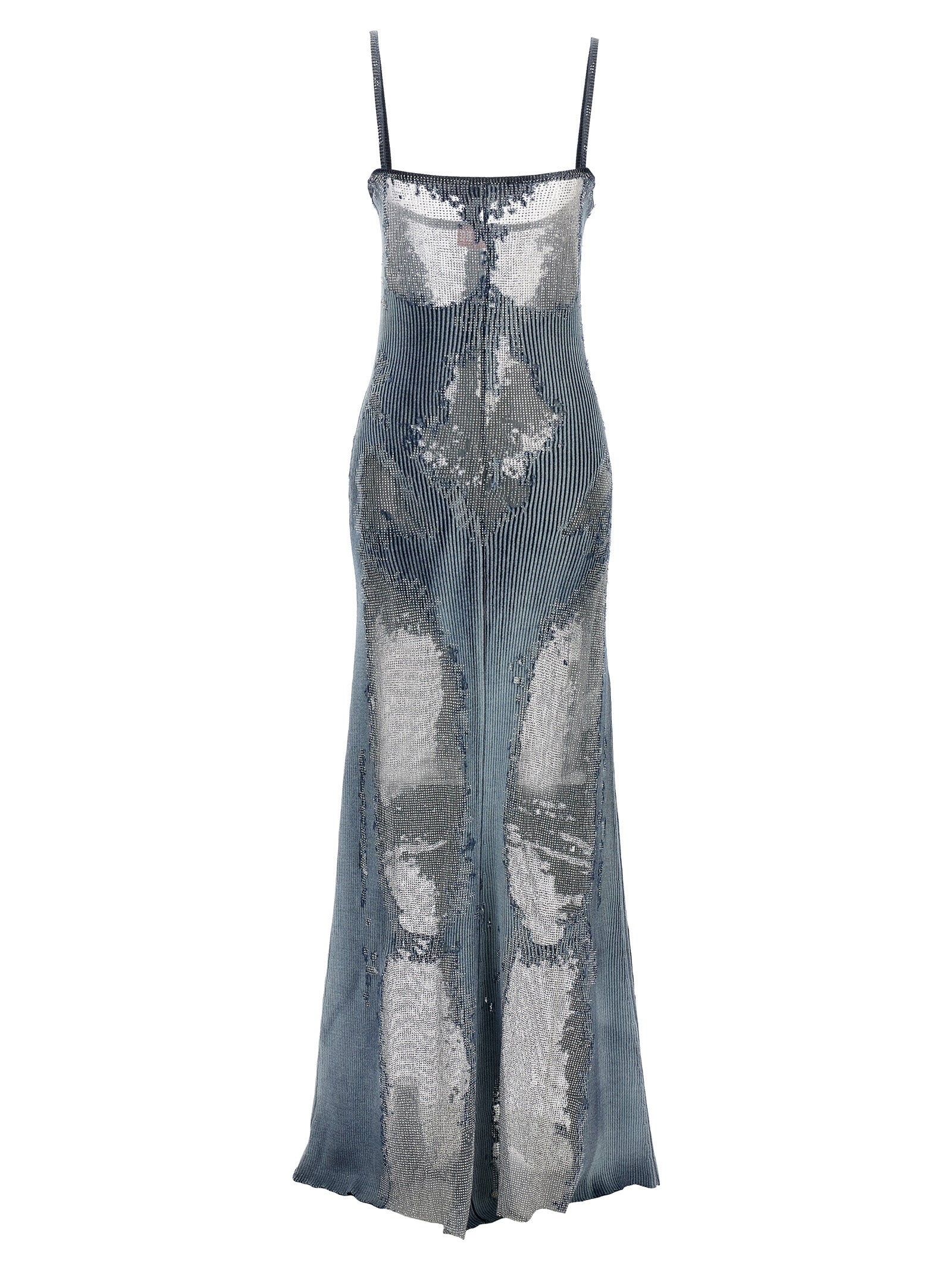 Long 'M-Claudia' ribbed cotton dress with transparent inserts and rhinestone appliqué, and thin straps.