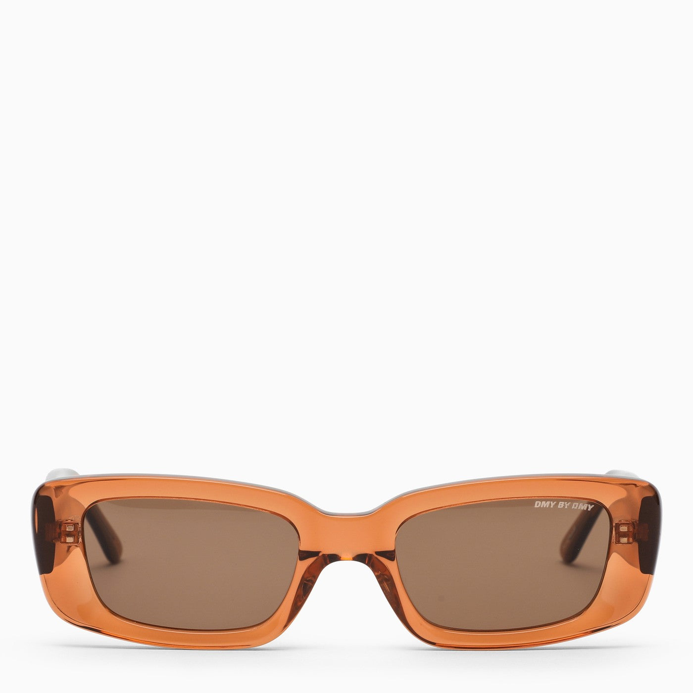 DMY BY DMY sunglasses in amber-coloured PVC in a rectangular shape with brown lenses and engraved logo on the temple and lens.