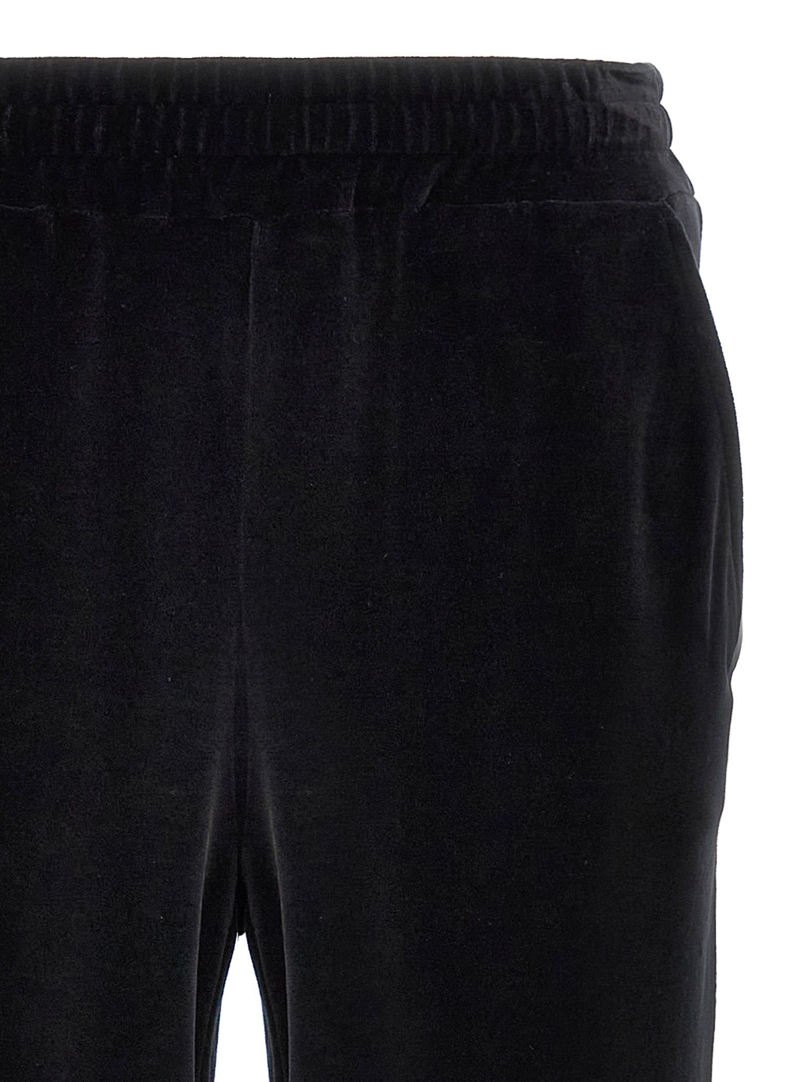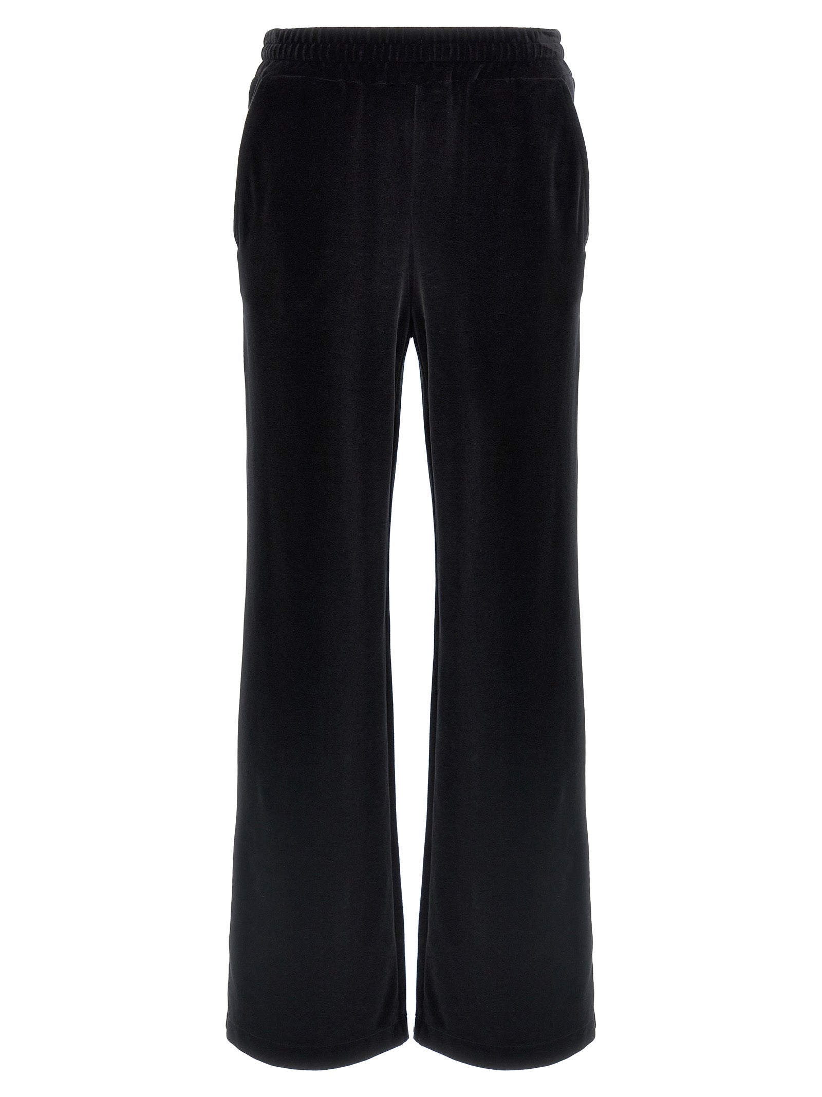 'Black Sicily' chenille joggers with elastic and drawstring at the waist, pockets, wide leg, back logo embroidery.