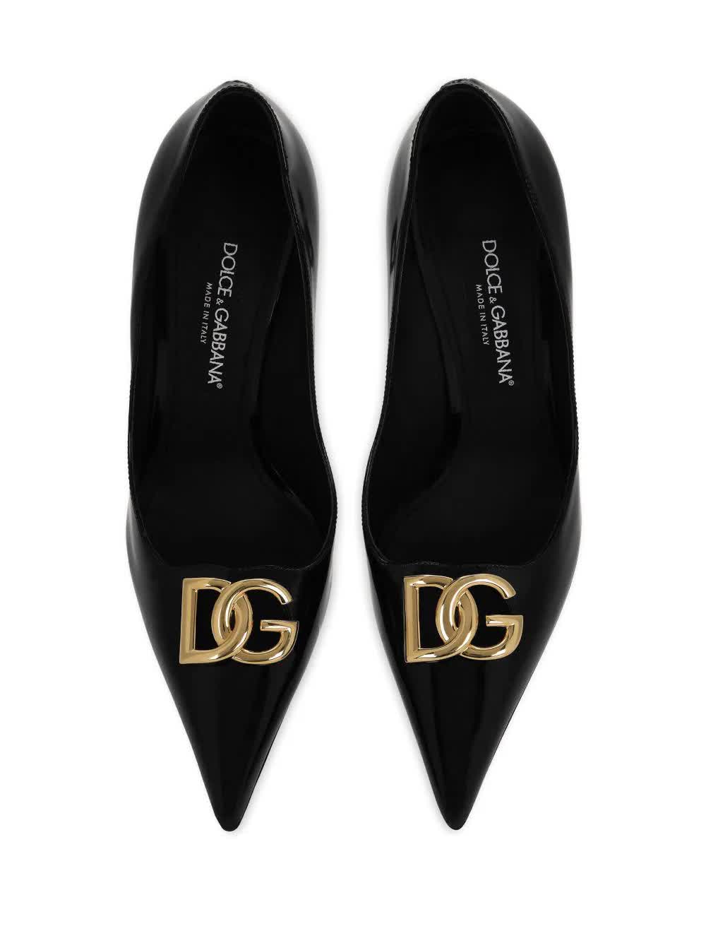 Dolce&Gabbana presenta queste décolleté realizzate in pelle di vitello lucida con logo DG cut out.