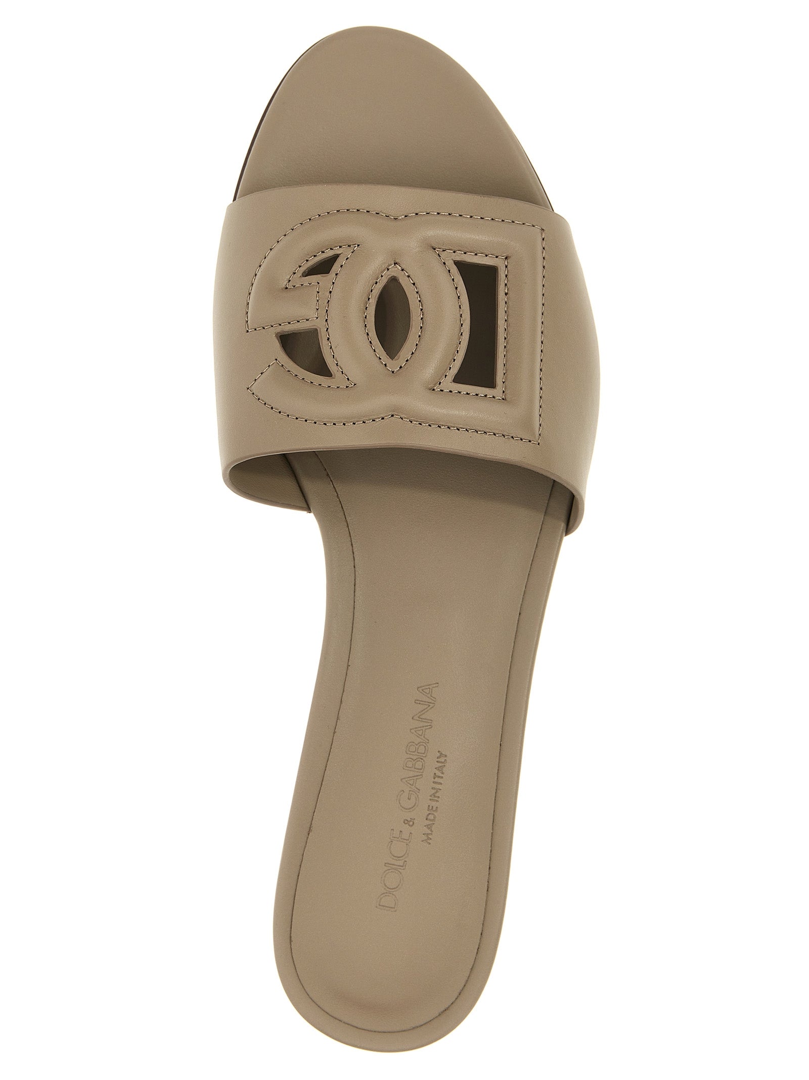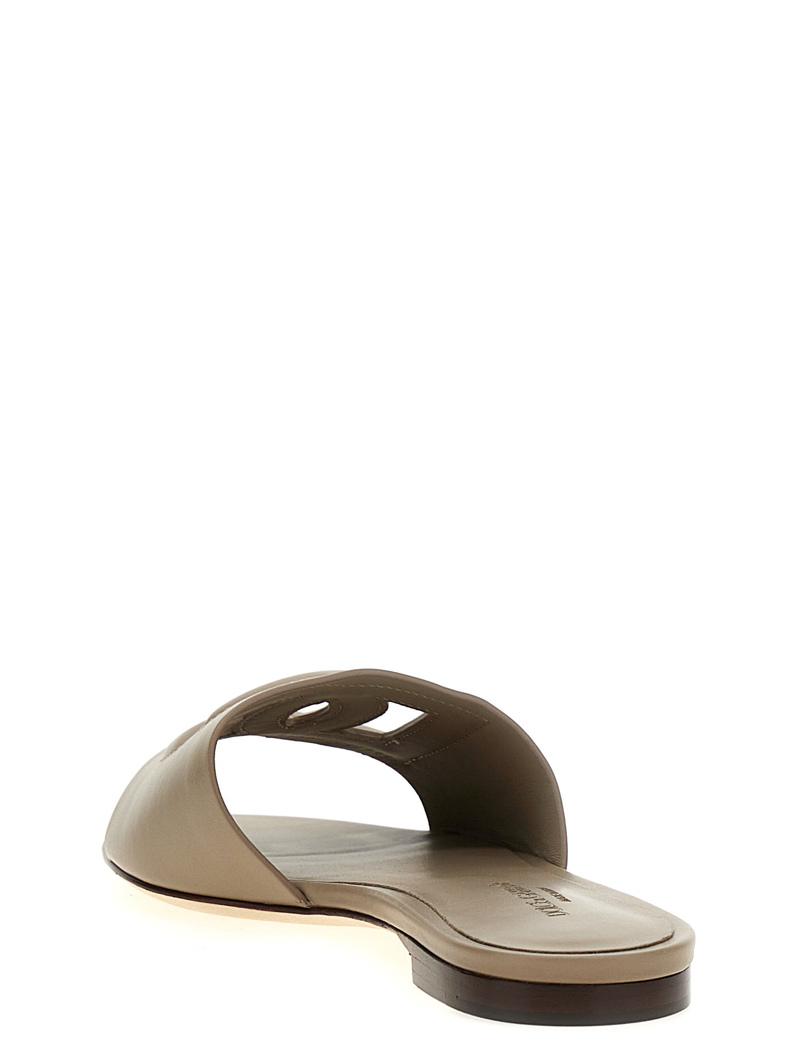 Leather slides with 'DG' cut out logo, leather sole.