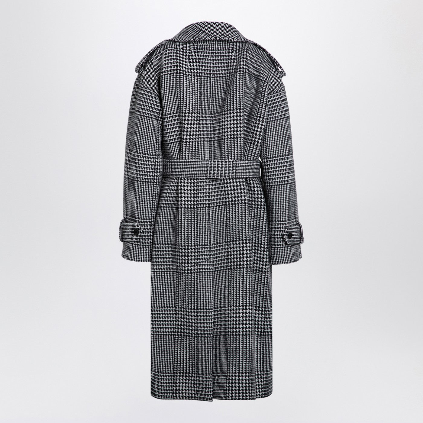 Double-breasted coat by Dolce & Gabbana in Houndstooth wool featuring a grey check pattern, notched lapels, a matching waistband, side welt pockets, long sleeves with adjustable cuffs and a central back vent.