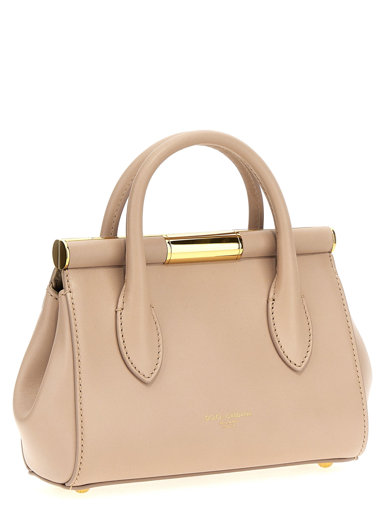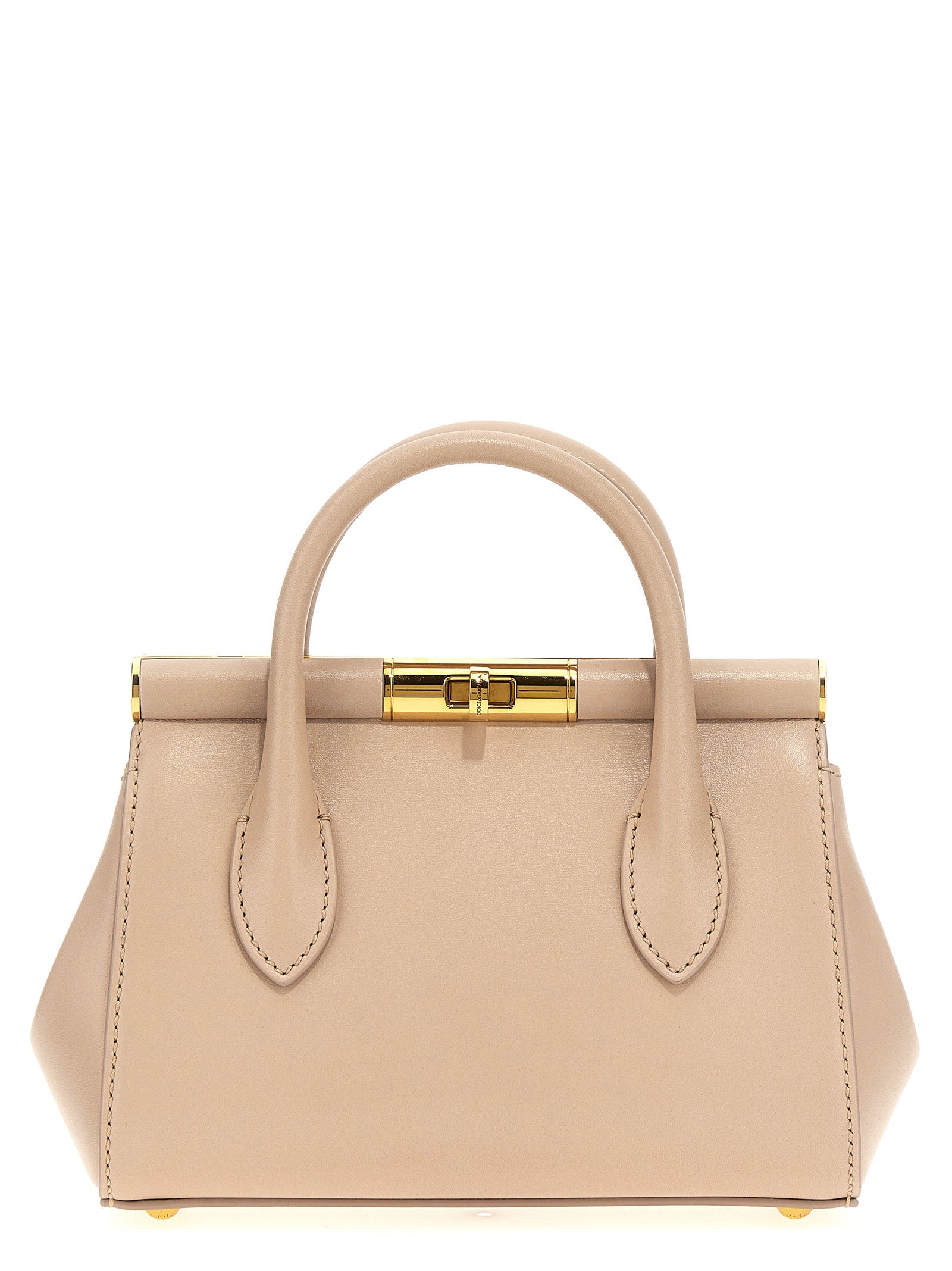 'Marlene' palmellated calf leather handbag, double fixed handle, turn lock, gold metal details, removable padlock charm, back embossed logo, removable chain shoulder strap.