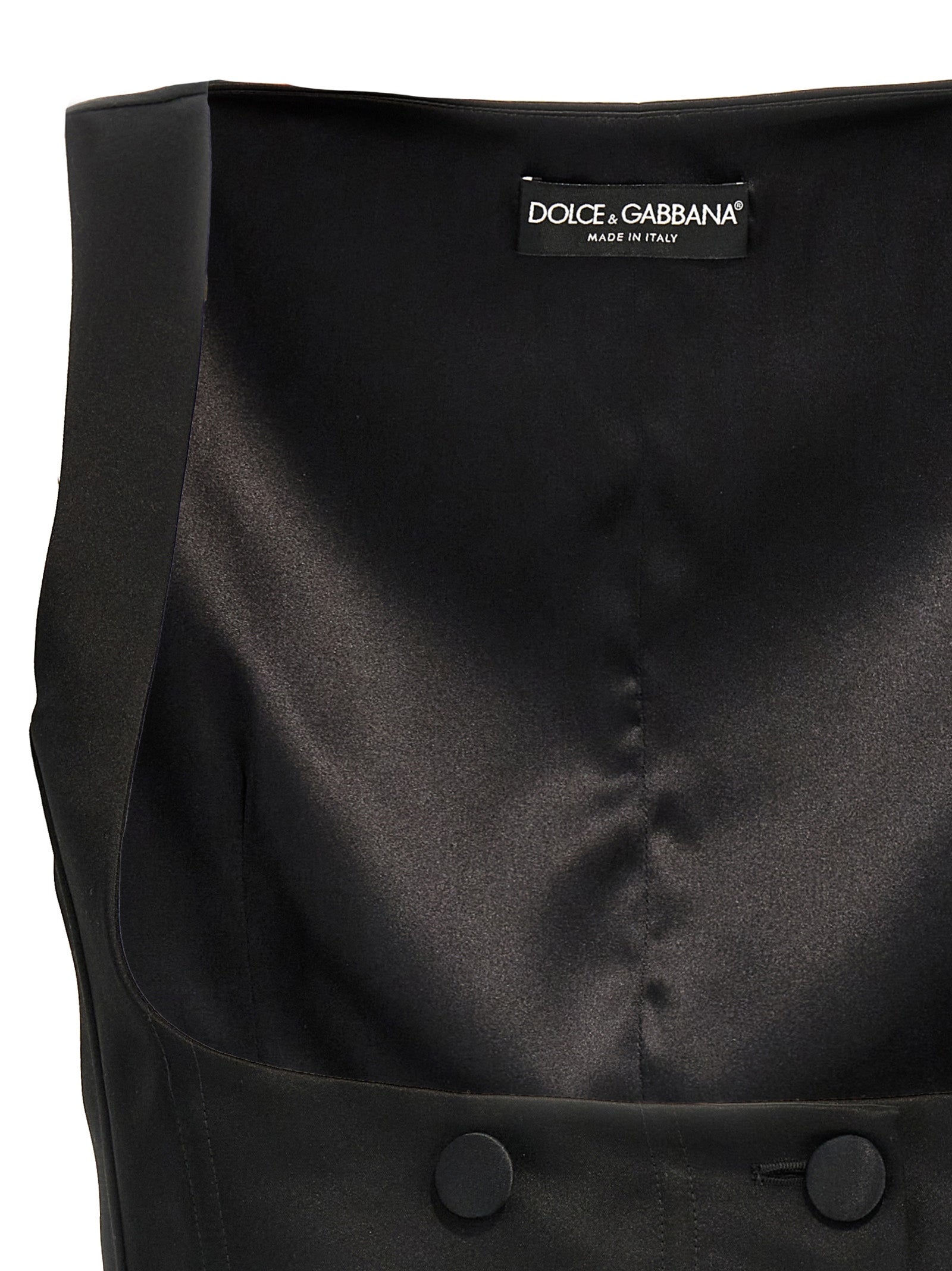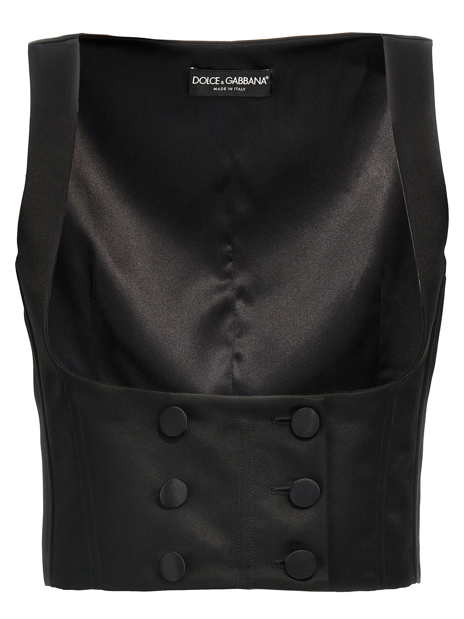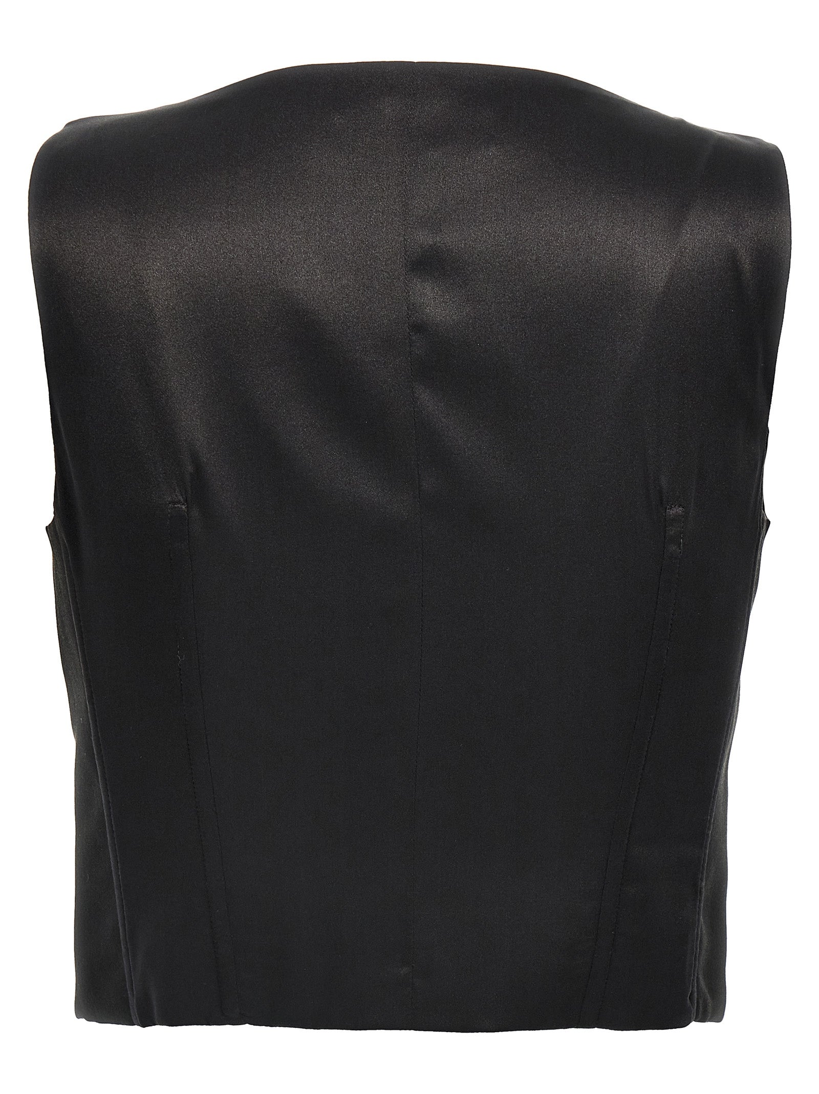 Tuxedo vest in silk duchesse, double-breasted model with button closure.