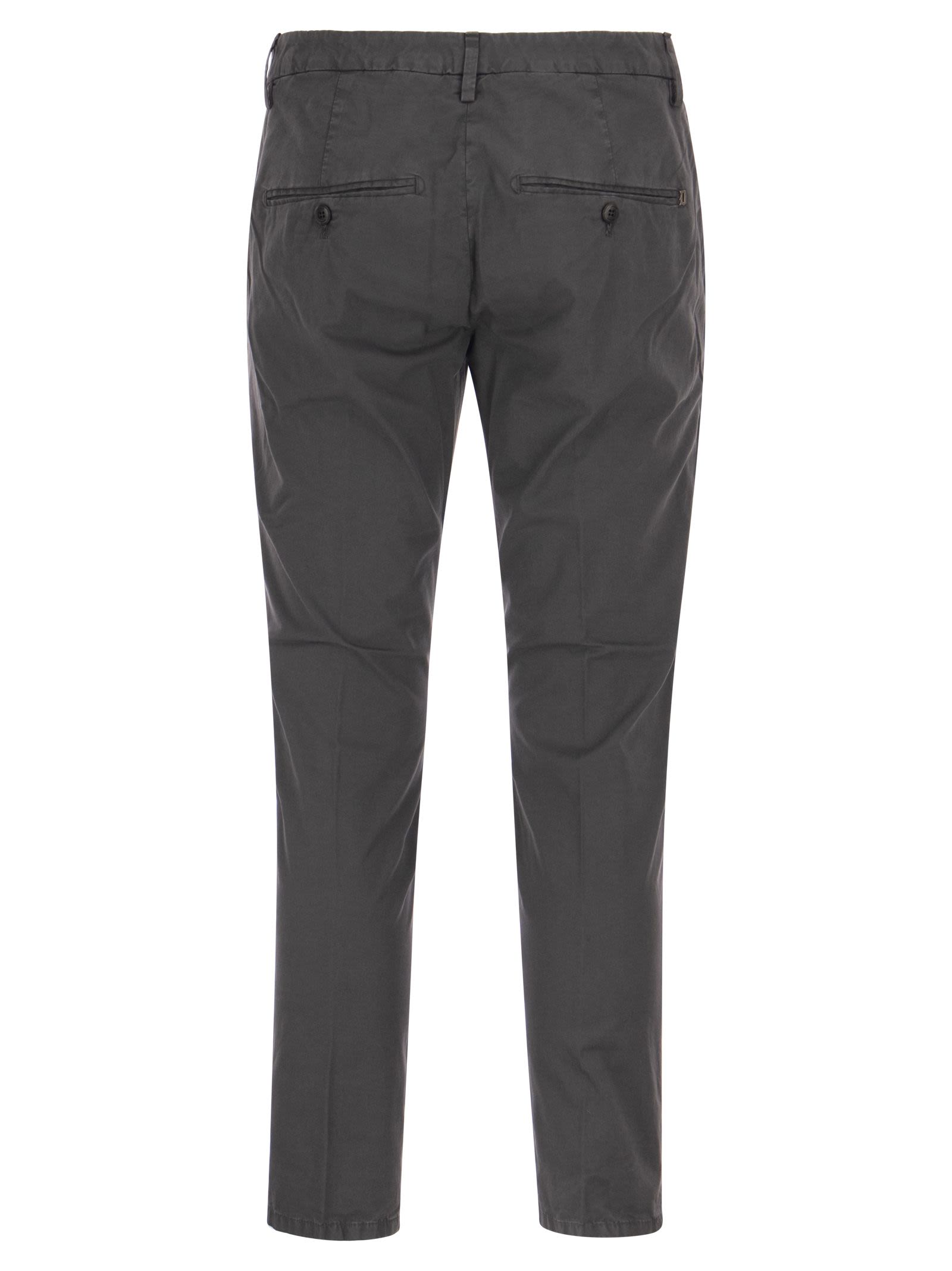 Made of light and soft cotton, these versatile low-waisted summer trousers with a straight leg and a slim fit are perfect for both everyday wear and informal occasions. - Welt pockets and zip closure - Interlocking sliding button - Dondup logo - Ankle length DESIGNER ID: UP518 GSE046X DQ9 DU 966
