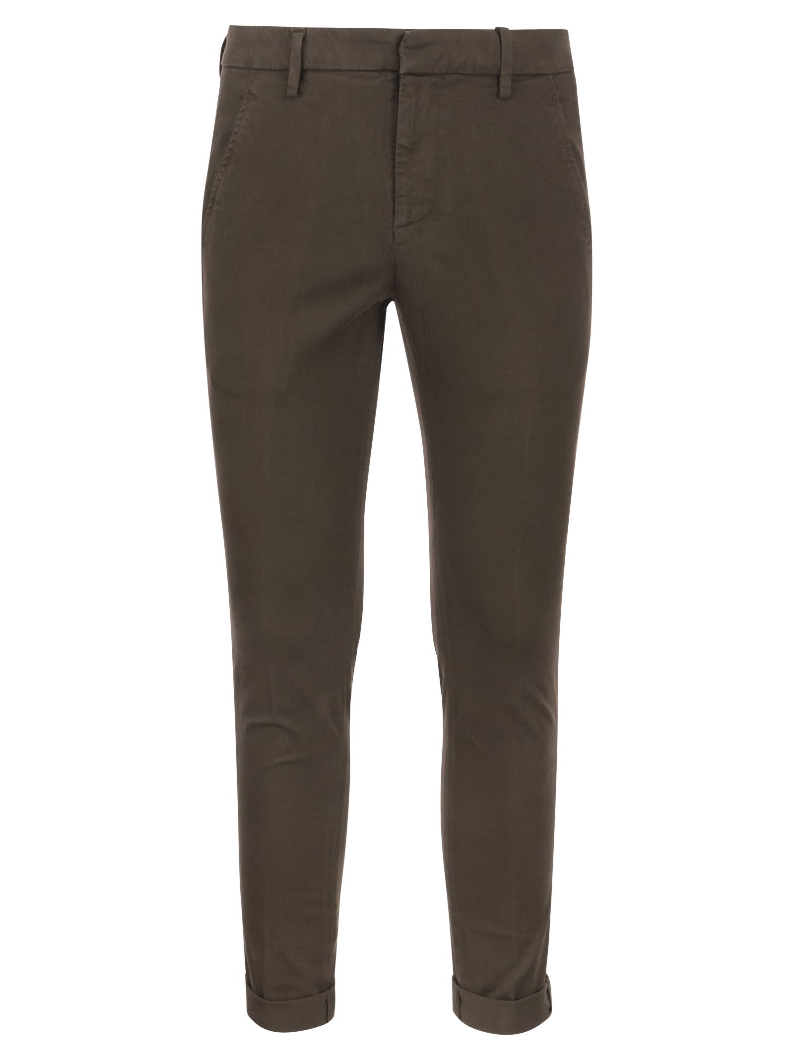 Gaubert slim-fit trousers with a low waist and welt pockets on the back. Warm-handed stretch gabardine provides excellent fit and protection, perfect for casual or elegant outfits. - Welt pockets - Dondup logo on the back DESIGNER ID: UP235 GSE043U PTD DU 718