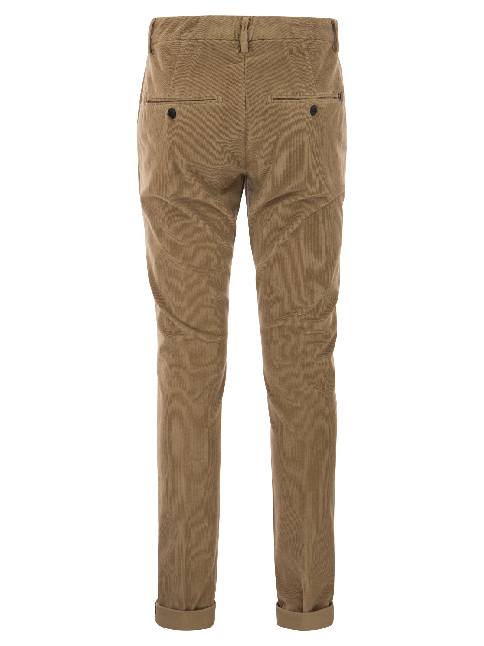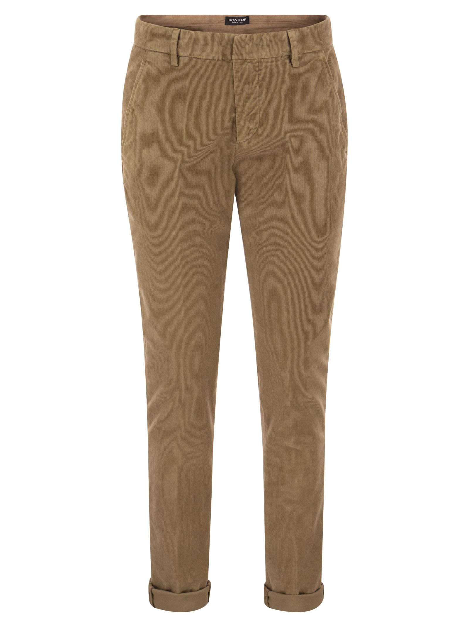 The Dondup GAUBERT trousers are a trendy everyday item for those who love classic style, made of stretch cotton. They are characterised by a velvet milleraies workmanship that gives them a more wintry look. - Dondup logo - Made of stretch cotton - Zip and sliding button closure - Milleraies striped workmanship DESIGNER ID: UP235 VS0028X TRT DU 029