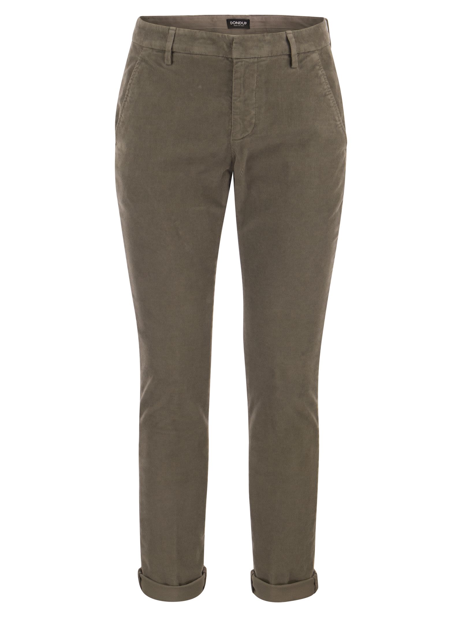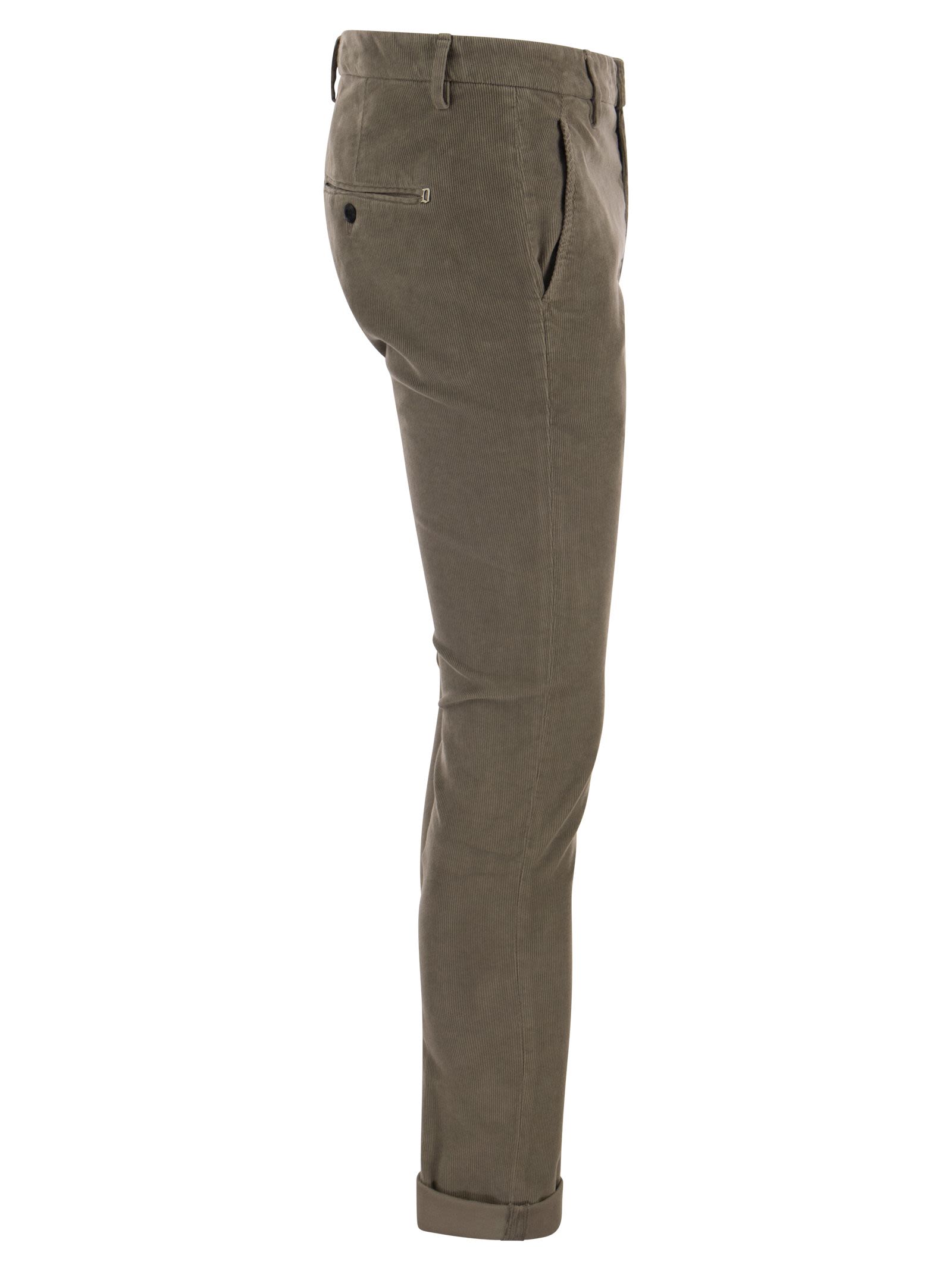 The Dondup GAUBERT trousers are a trendy everyday item for those who love classic style, made of stretch cotton. They are characterised by a velvet milleraies workmanship that gives them a more wintry look. - Dondup logo - Made of stretch cotton - Zip and sliding button closure - Milleraies striped workmanship DESIGNER ID: UP235 VS0028X TRT DU 027