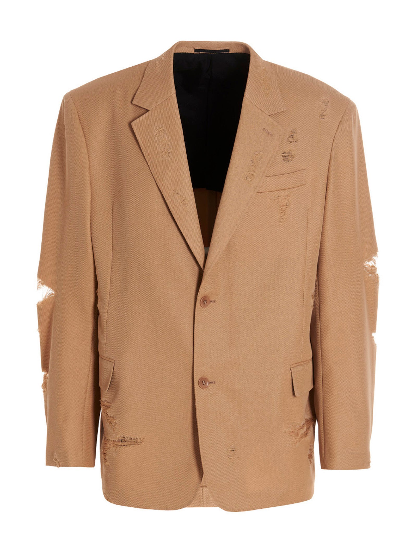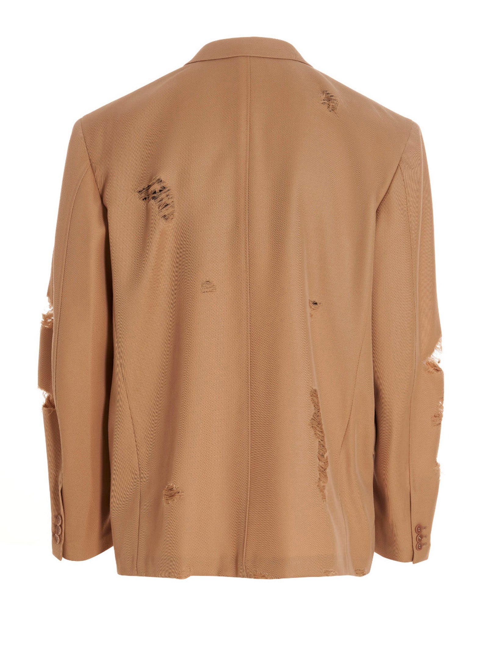 Destroyed Tailored' single breast wool blazer jacket with used and destroyed effect details, button closure, pockets and long sleeves.