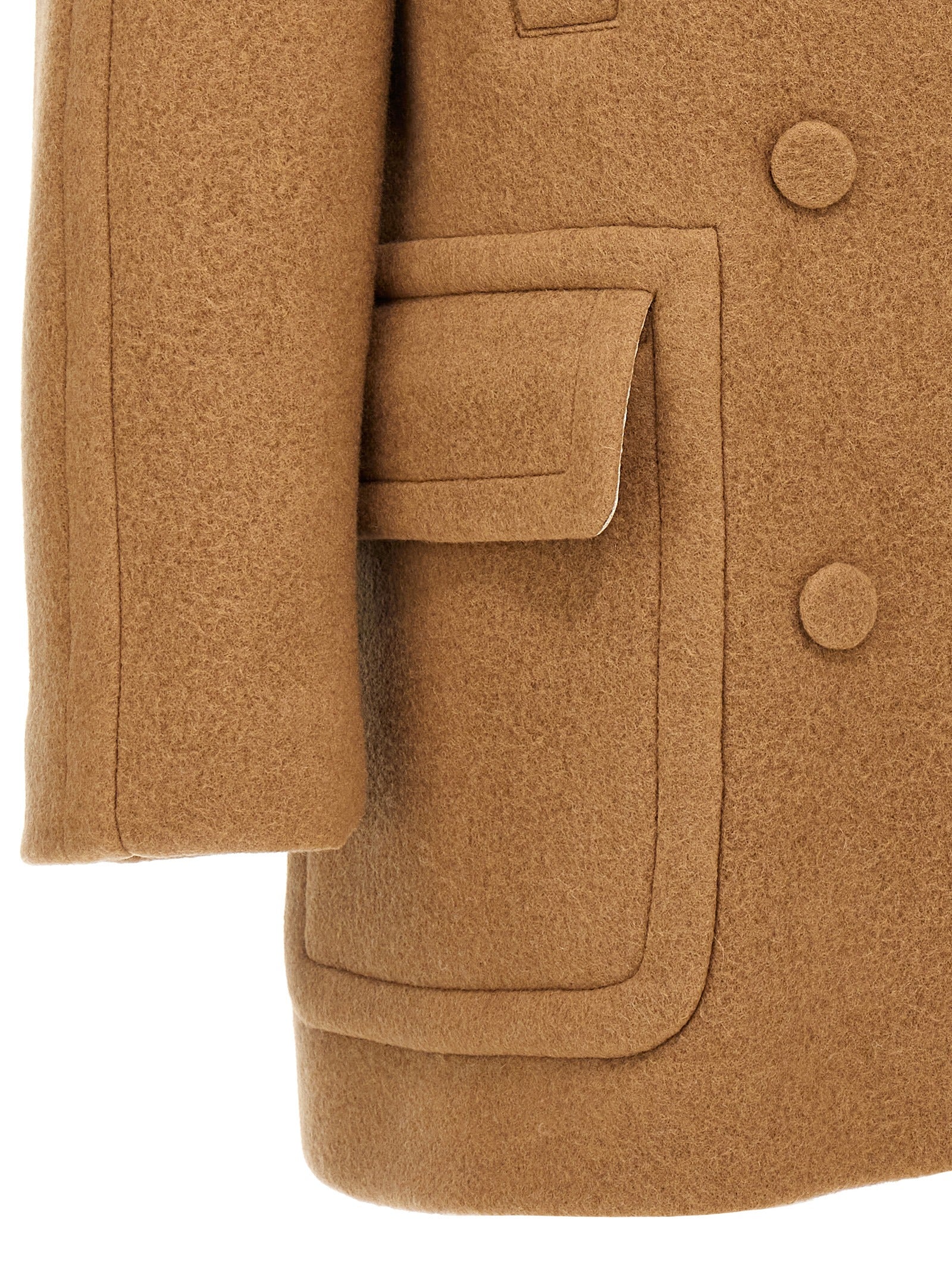 'Randia' double-breasted wool coat with button closure, pockets, long sleeves, back half belt.