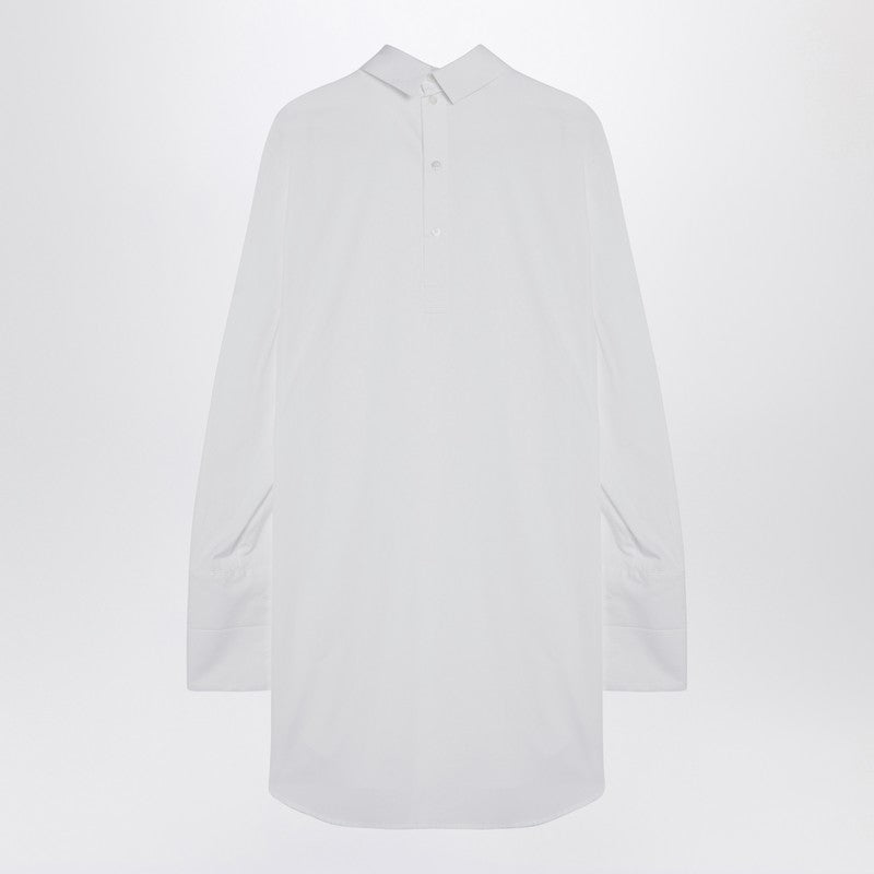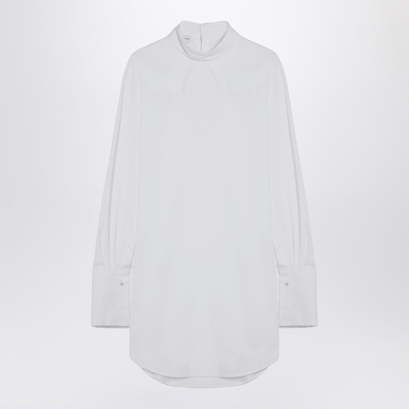 Oversized shirt by Dries Van Noten in white cotton poplin featuring a high collar design, a back button fastening, long sleeves, button cuffs and a curved hem.