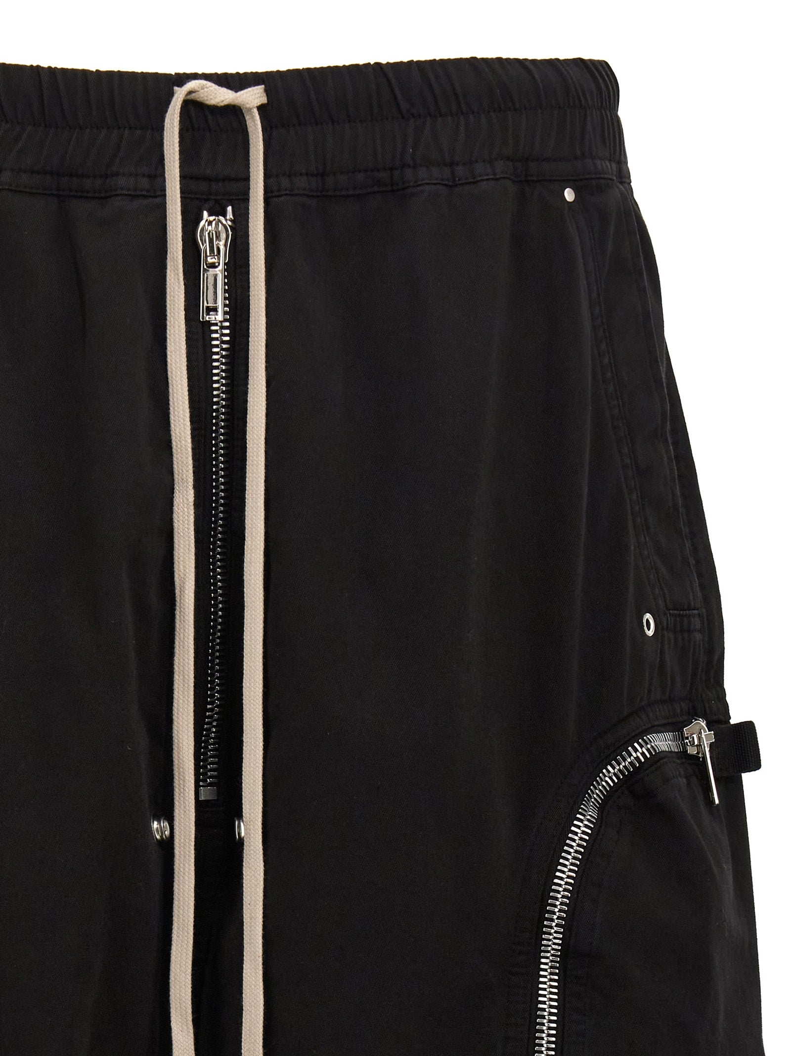 'Bauhaus' cotton bermudas, elastic and drawstring at the waist, zip flap, pockets.