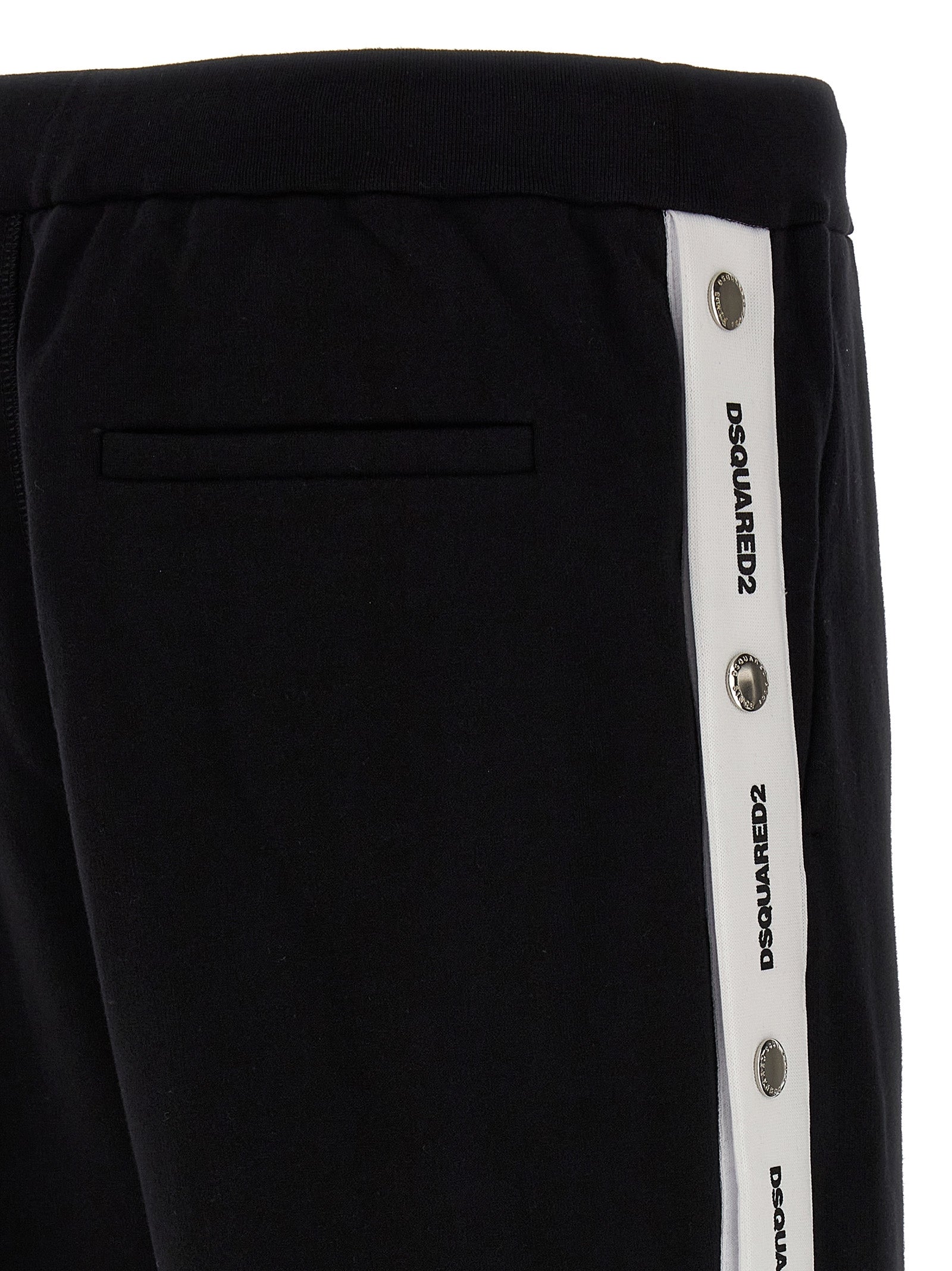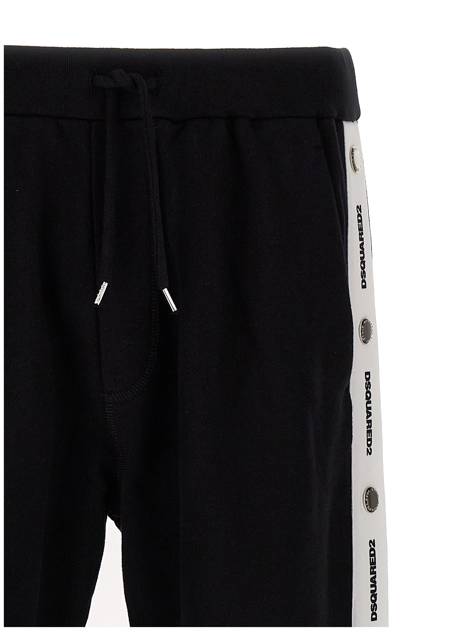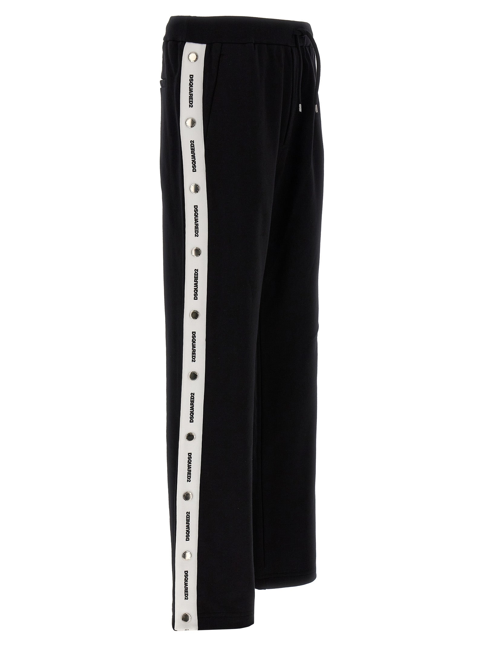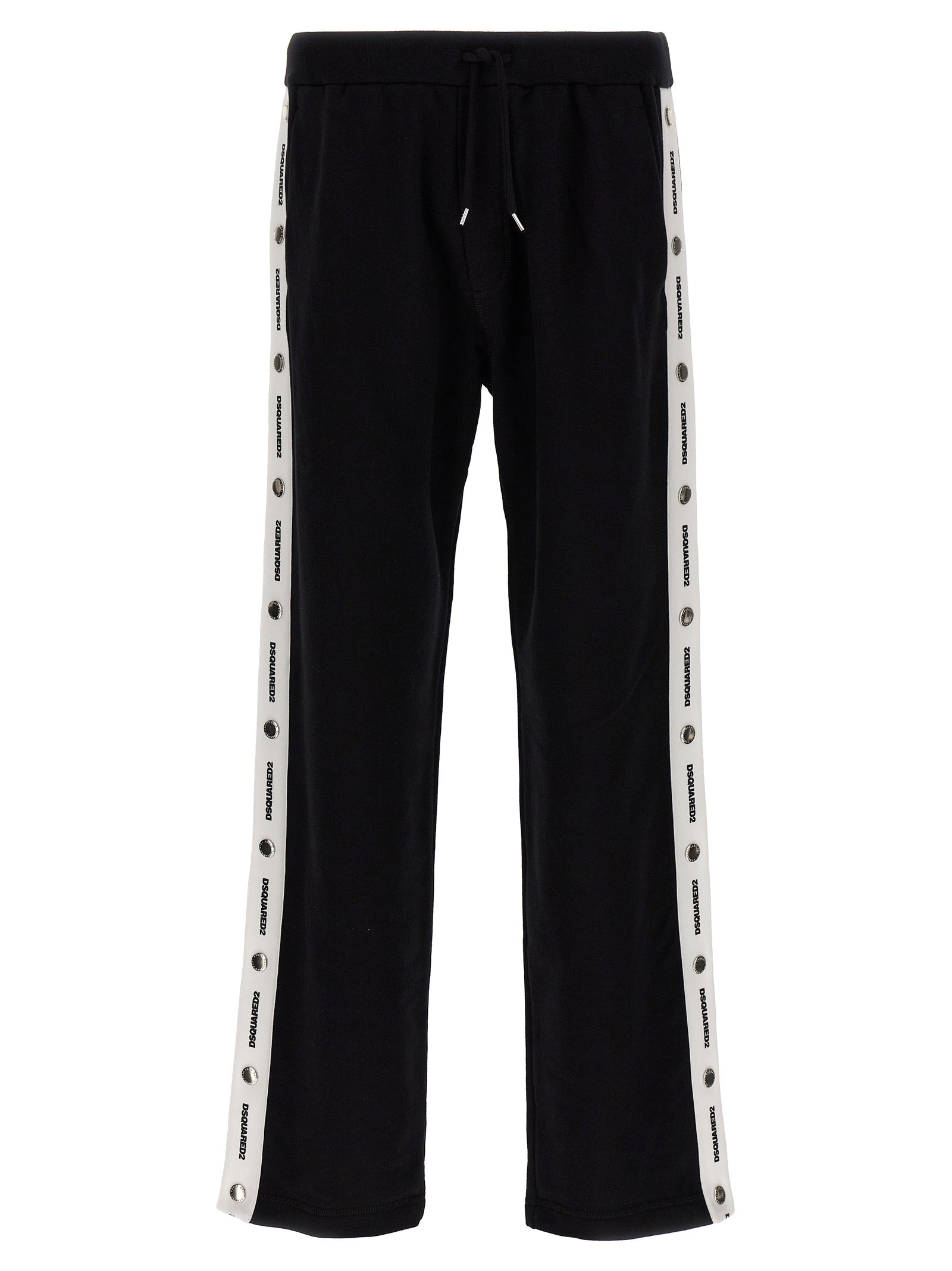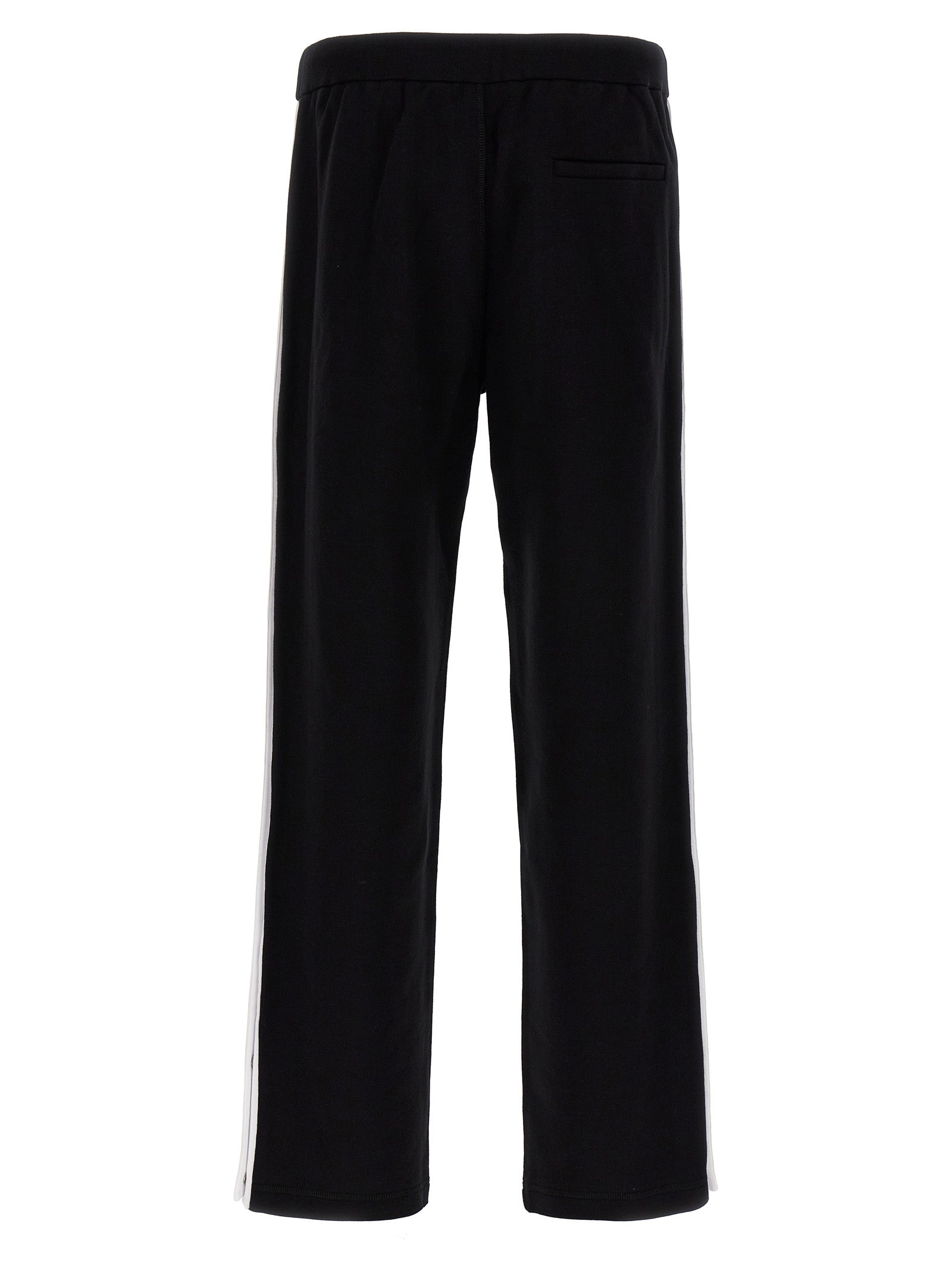 'Burbs' cotton joggers with contrast side bands and opening buttons, elastic and drawstring at the waist, pockets.