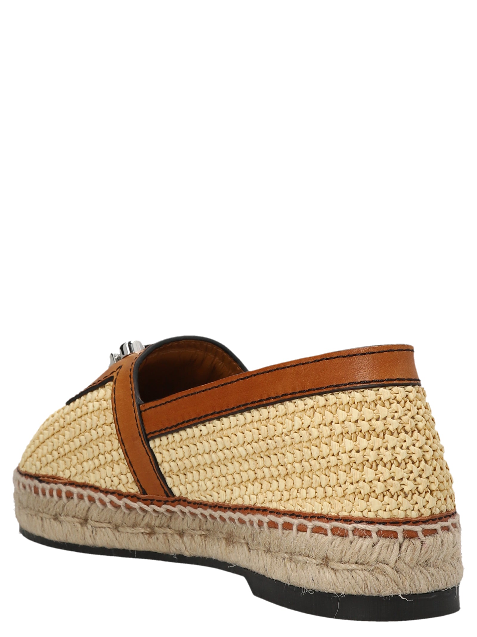 'Cashmere Rafia' raffia and leather espradillas with front metal logo appliqué, a cord and rubber sole.