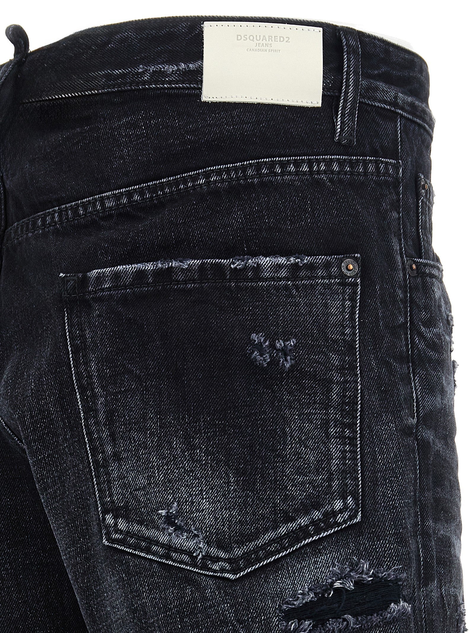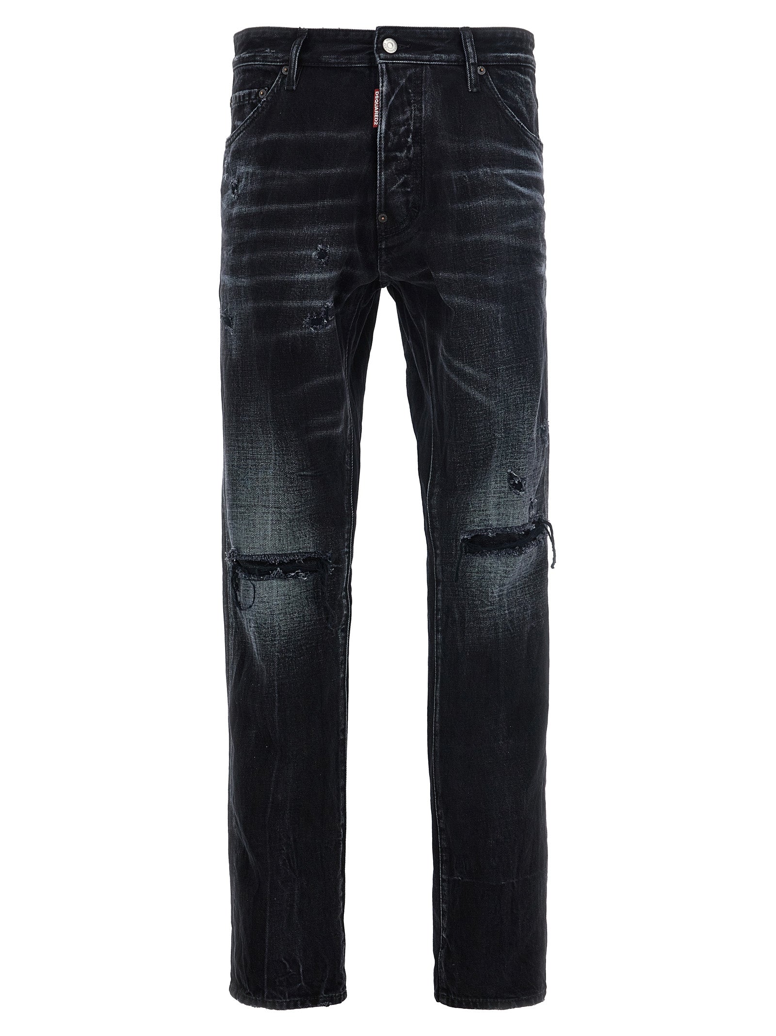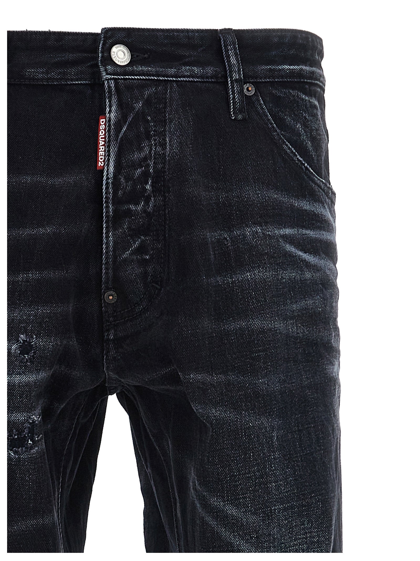 'Cool Guy' cotton denim jeans with used-effect details, button closure, five pockets, leather logo tag.