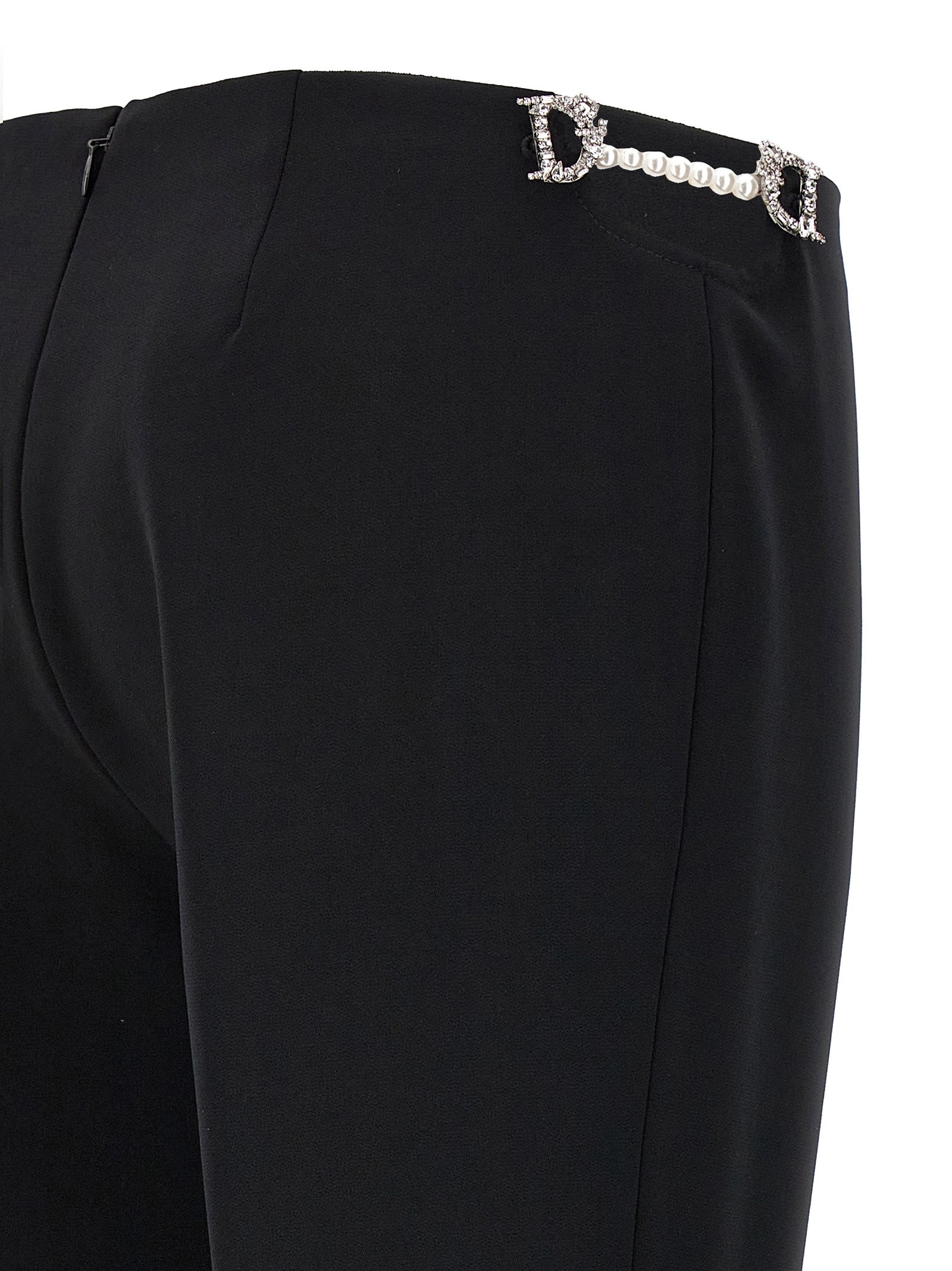'D2 Jewel' pants with jewel detail on the sides, back zip closure, flared leg.
