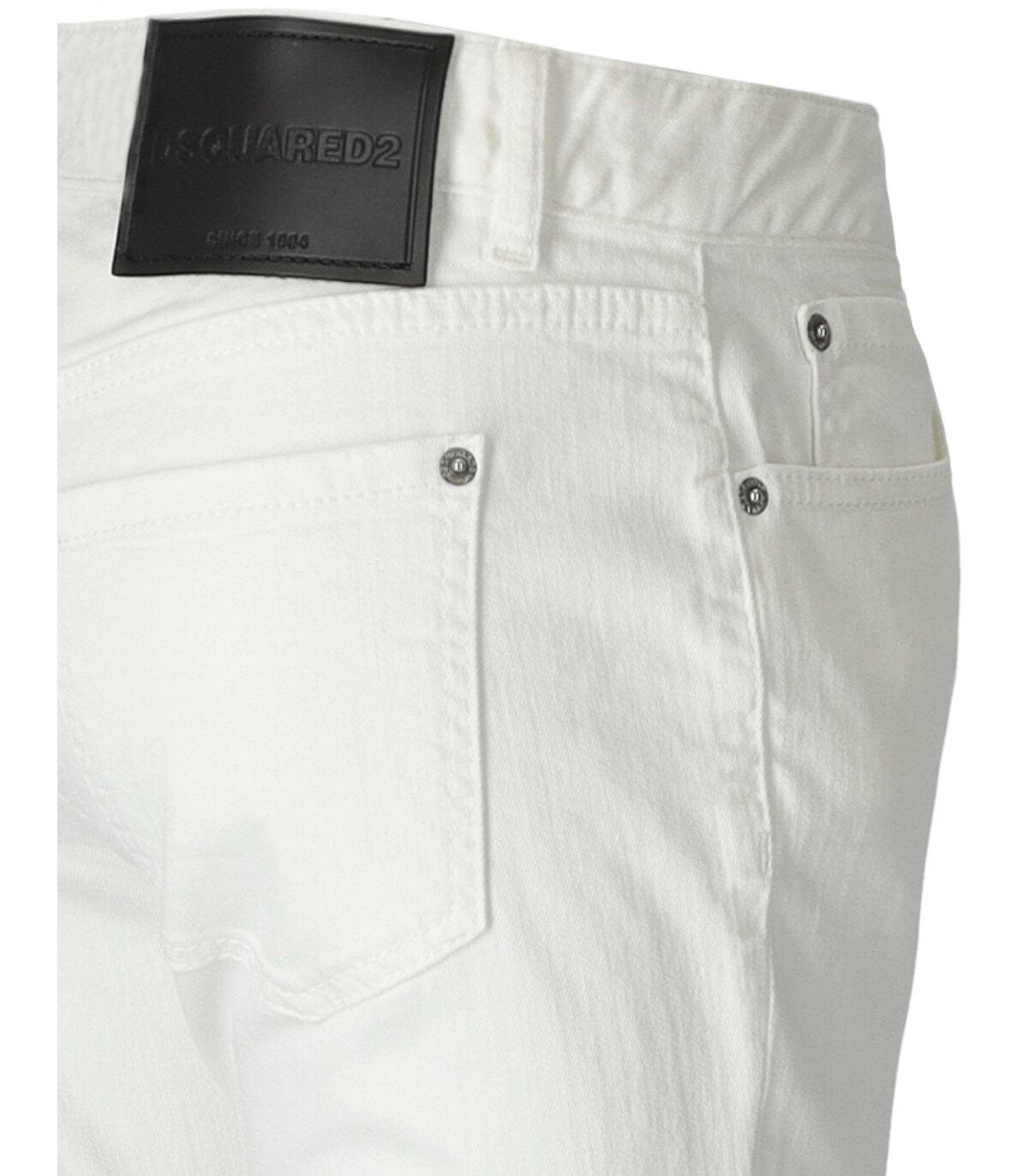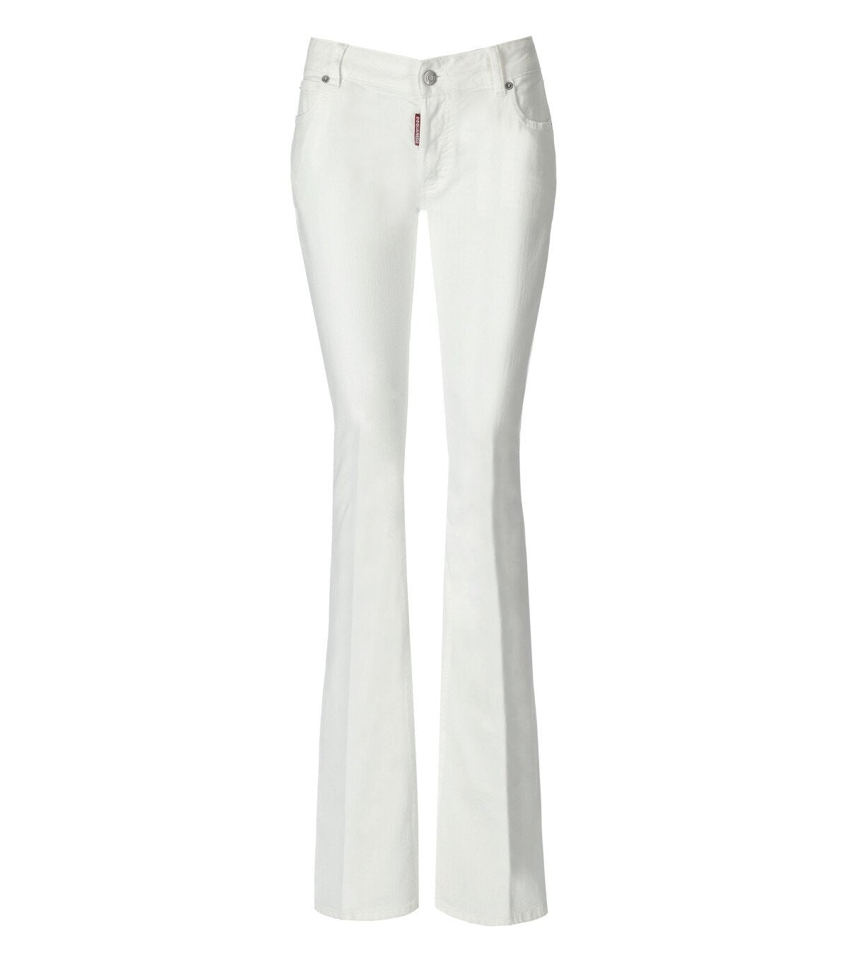 Twiggy jeans by Dsquared2 made of white stretch cotton denim with medium waist, fitted leg with flared bottom. Button closure. Composition: 92% Cotton, 5% Elasterel, 3% Elastane.