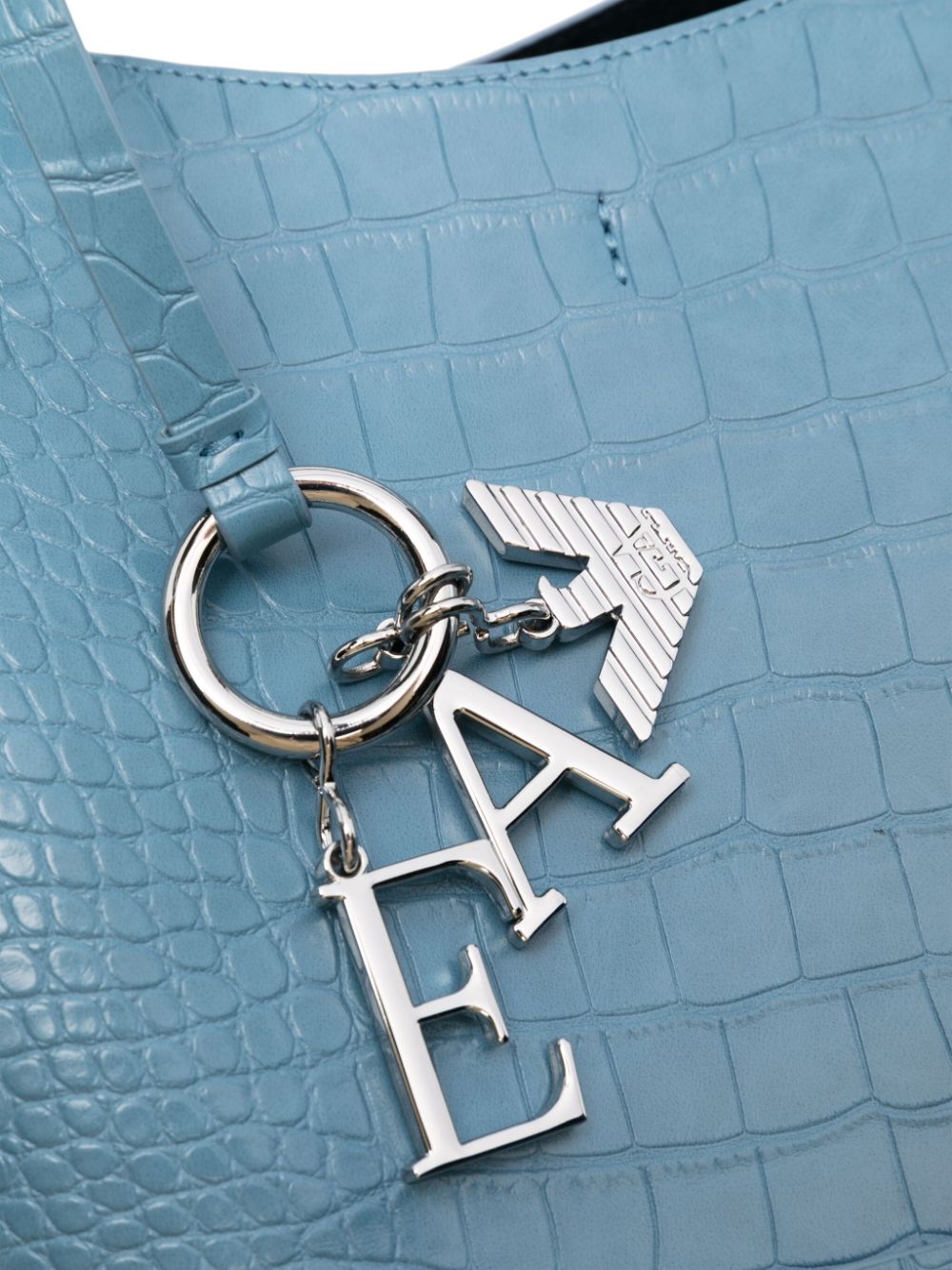Tiffany blue embossed crocodile effect debossed logo to the front silver-tone logo lettering keyring attachment carabiner fastening detachable shoulder strap two flat top handles main compartment removable pouch silver-tone hardware suede lining This piece comes complete with a protective dust bag.