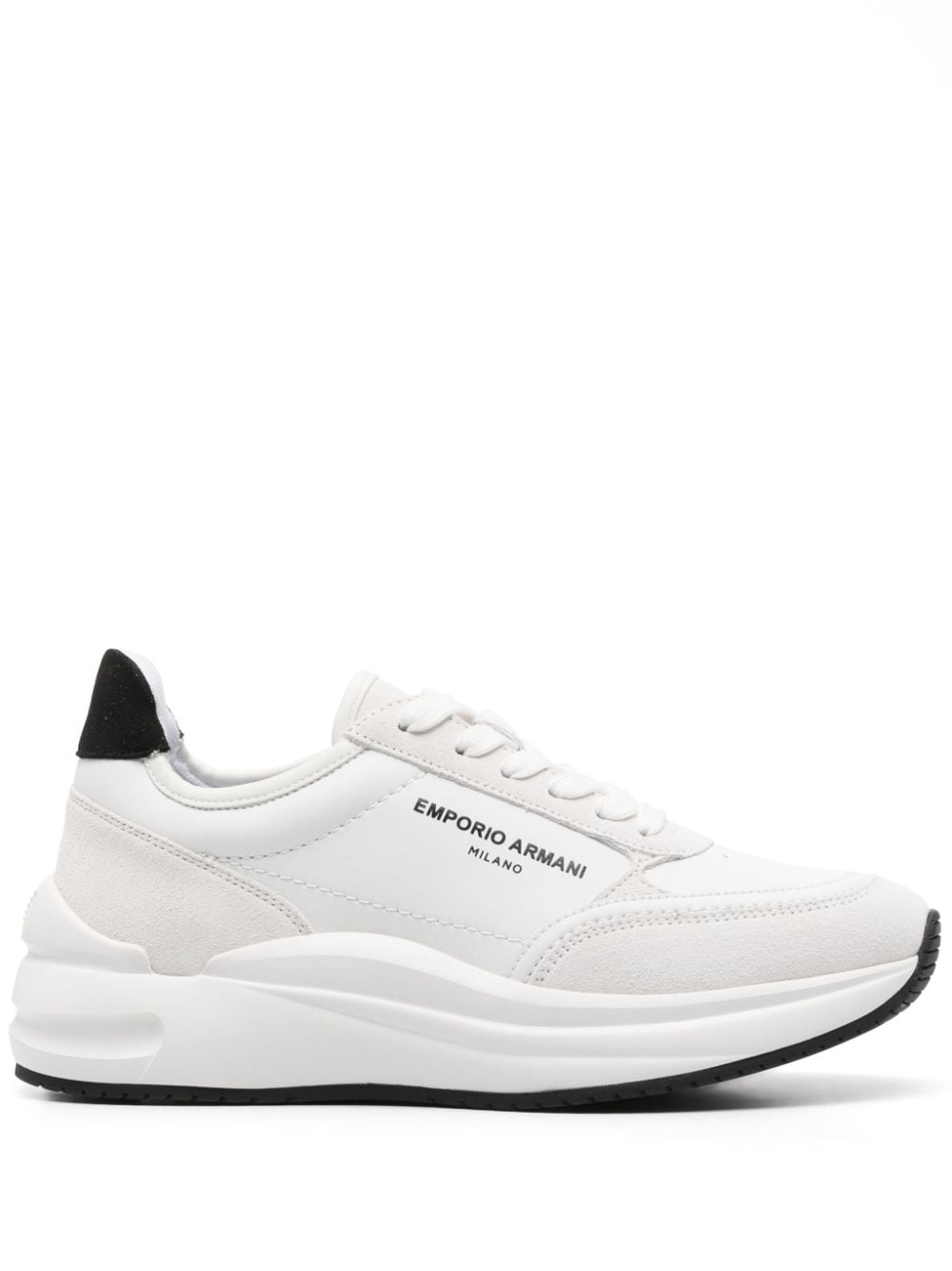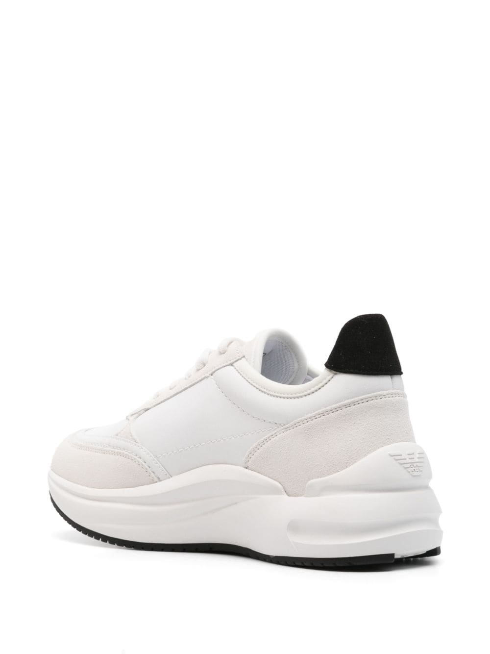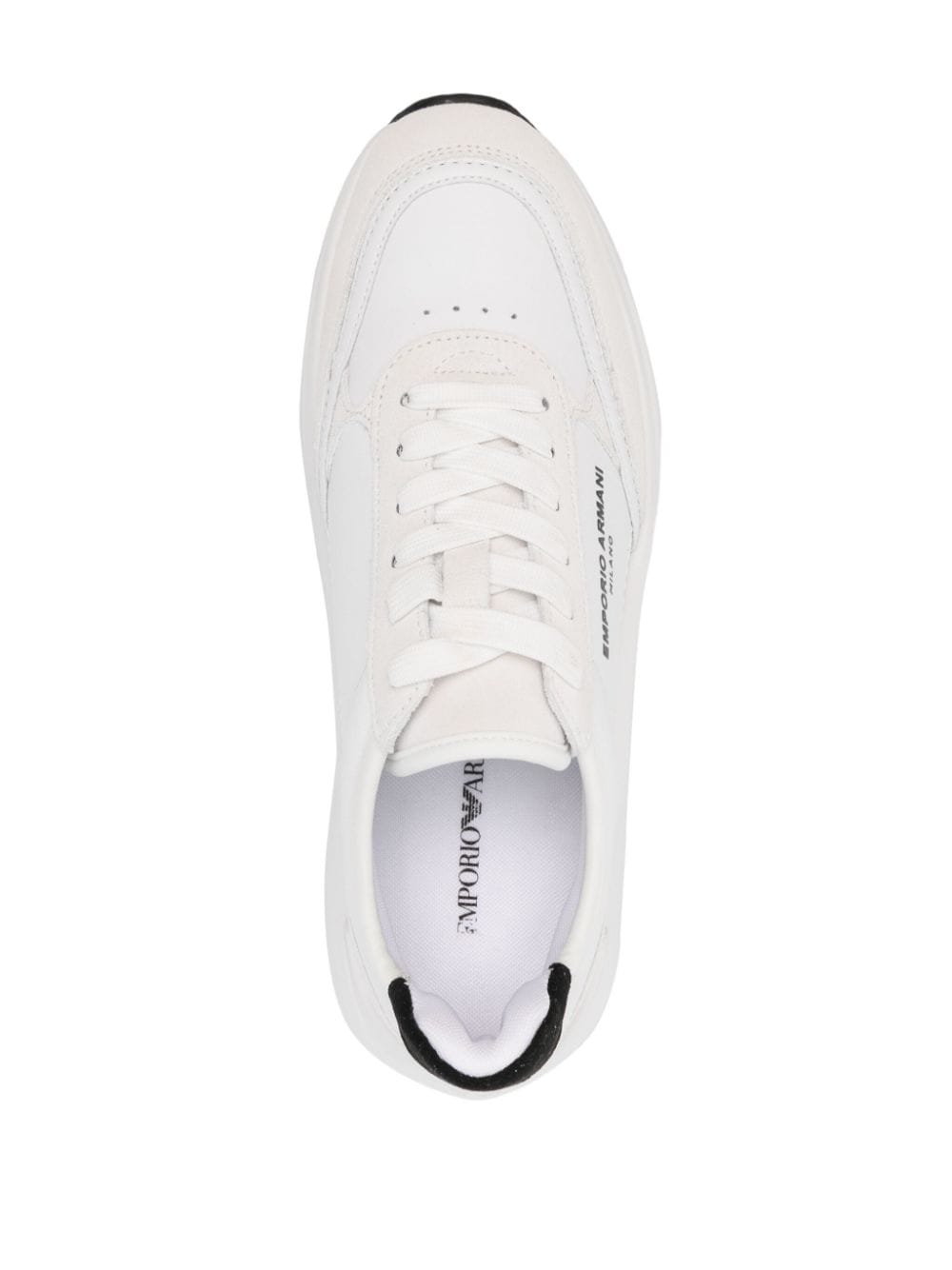 white/black calf leather panelled design round toe rubberised logo detail contrasting heel counter branded leather insole rubber sole front lace-up fastening