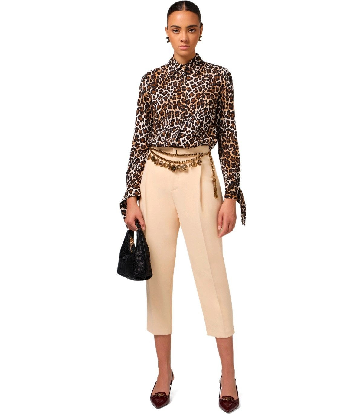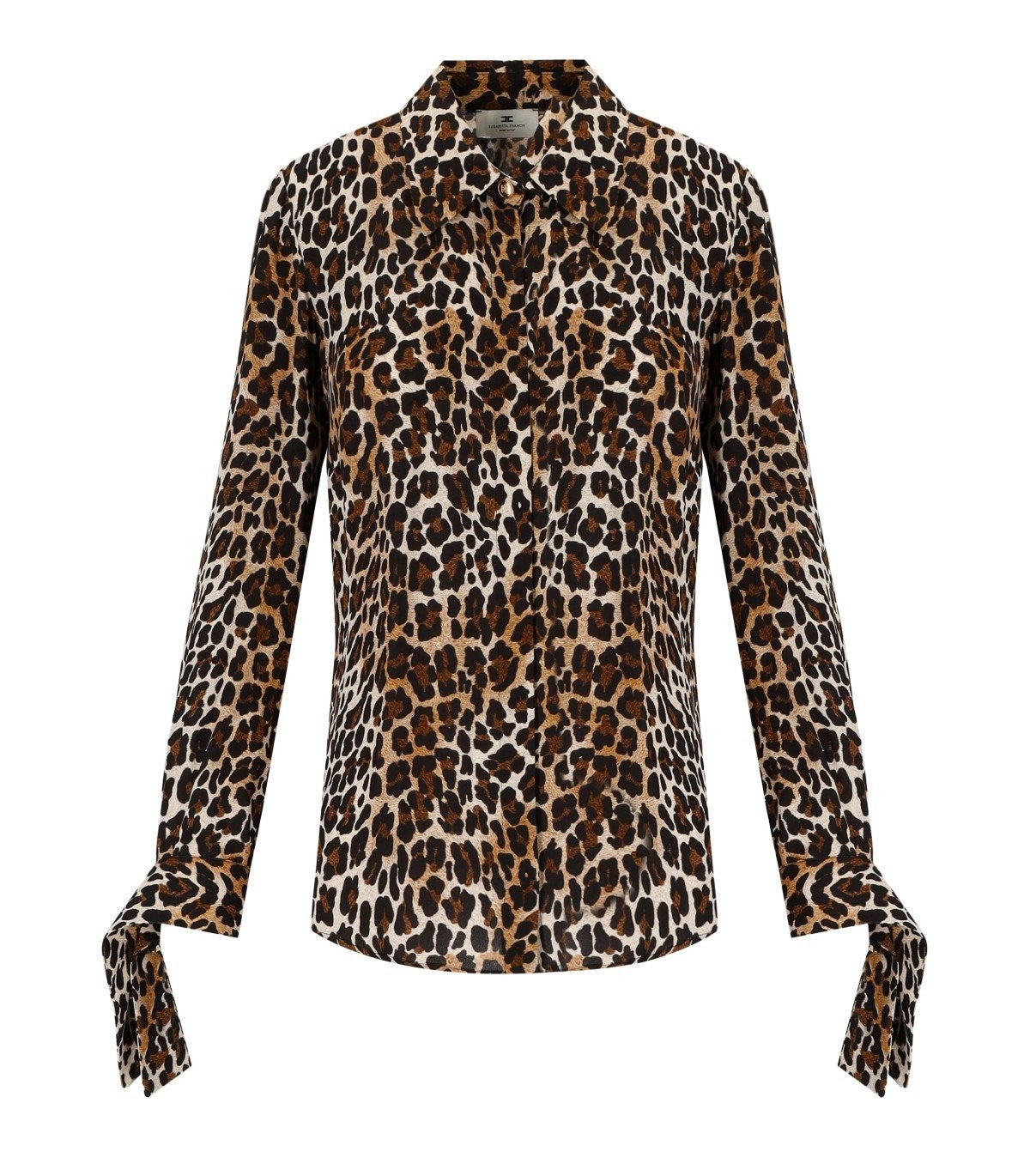 Shirt by Elisabetta Franchi made of viscose georgette with an animal print in shades of black and brown. Button closure, regular fit. The model is 177 cm tall and wears size 40IT. Composition: 100% viscose.