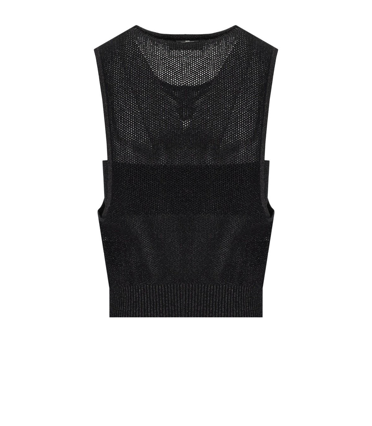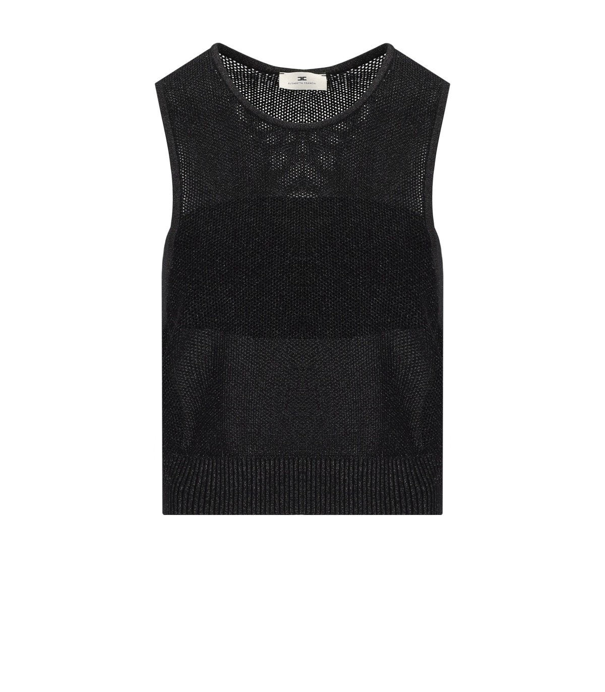 Top by Elisabetta Franchi made of lurex viscose with a net effect, in black. Characterized by a round neck, it features a coordinated internal band. Ribbed at the edges of the garment. Slim fit. Composition: 70% viscose, 25% polyamide, 5% metallic fiber.