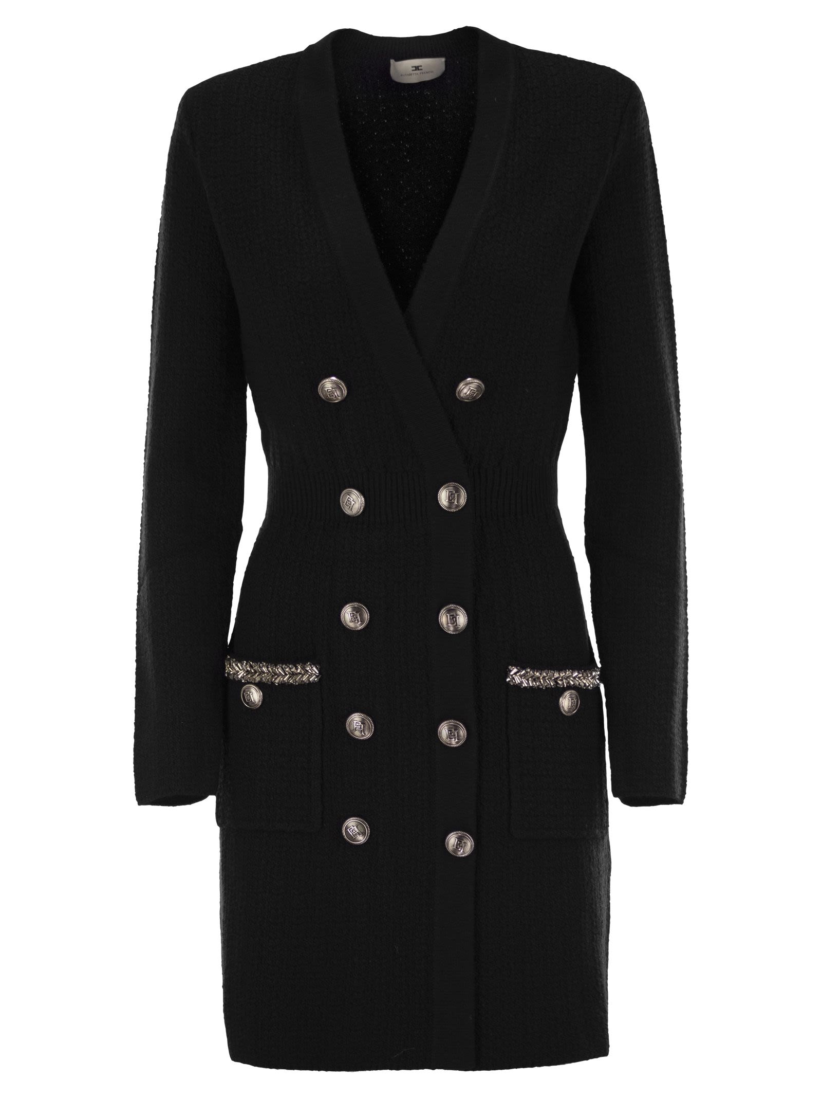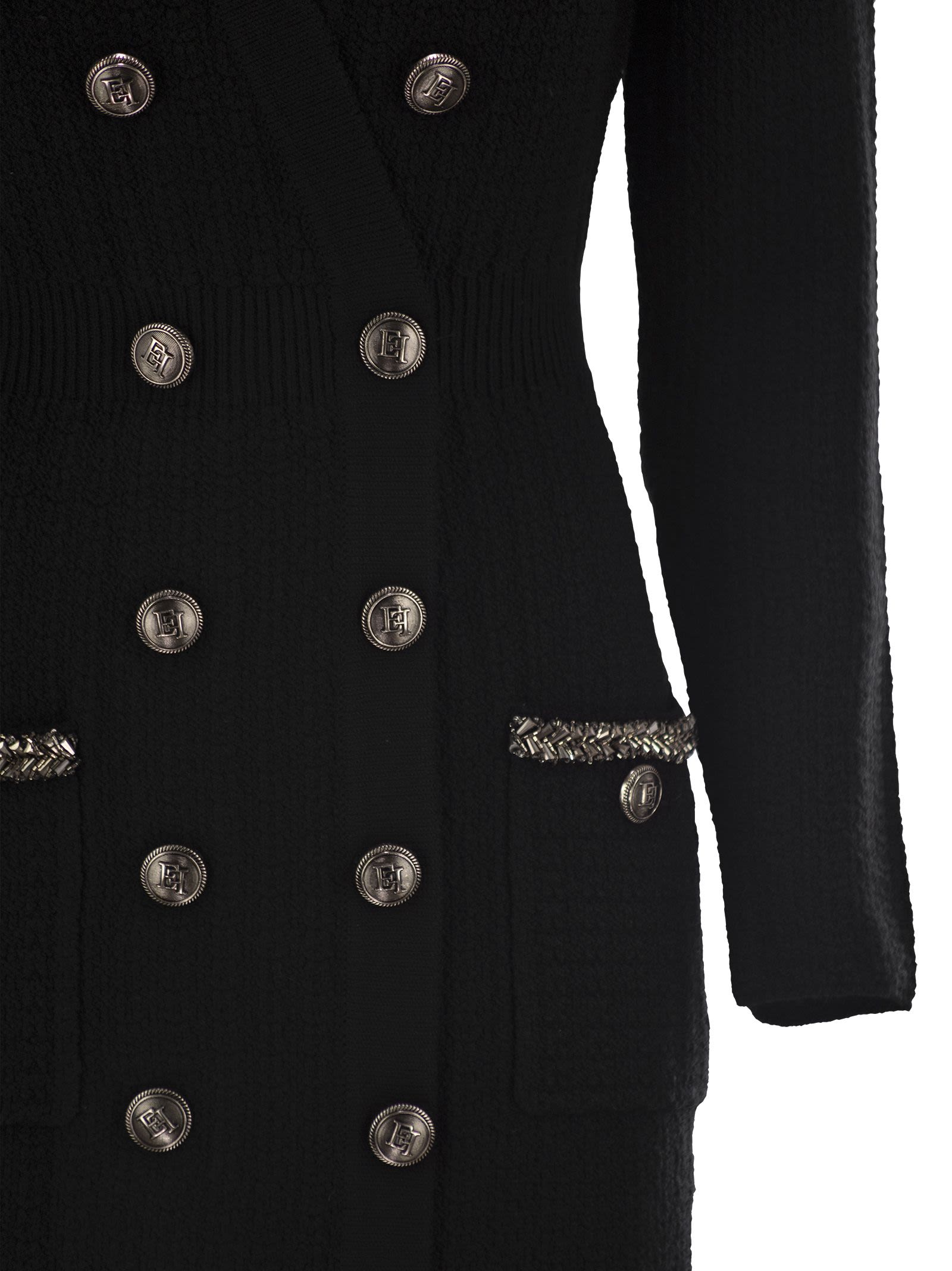 Elisabetta Franchi Robe Manteau In Bouclé Wool With Embroidery