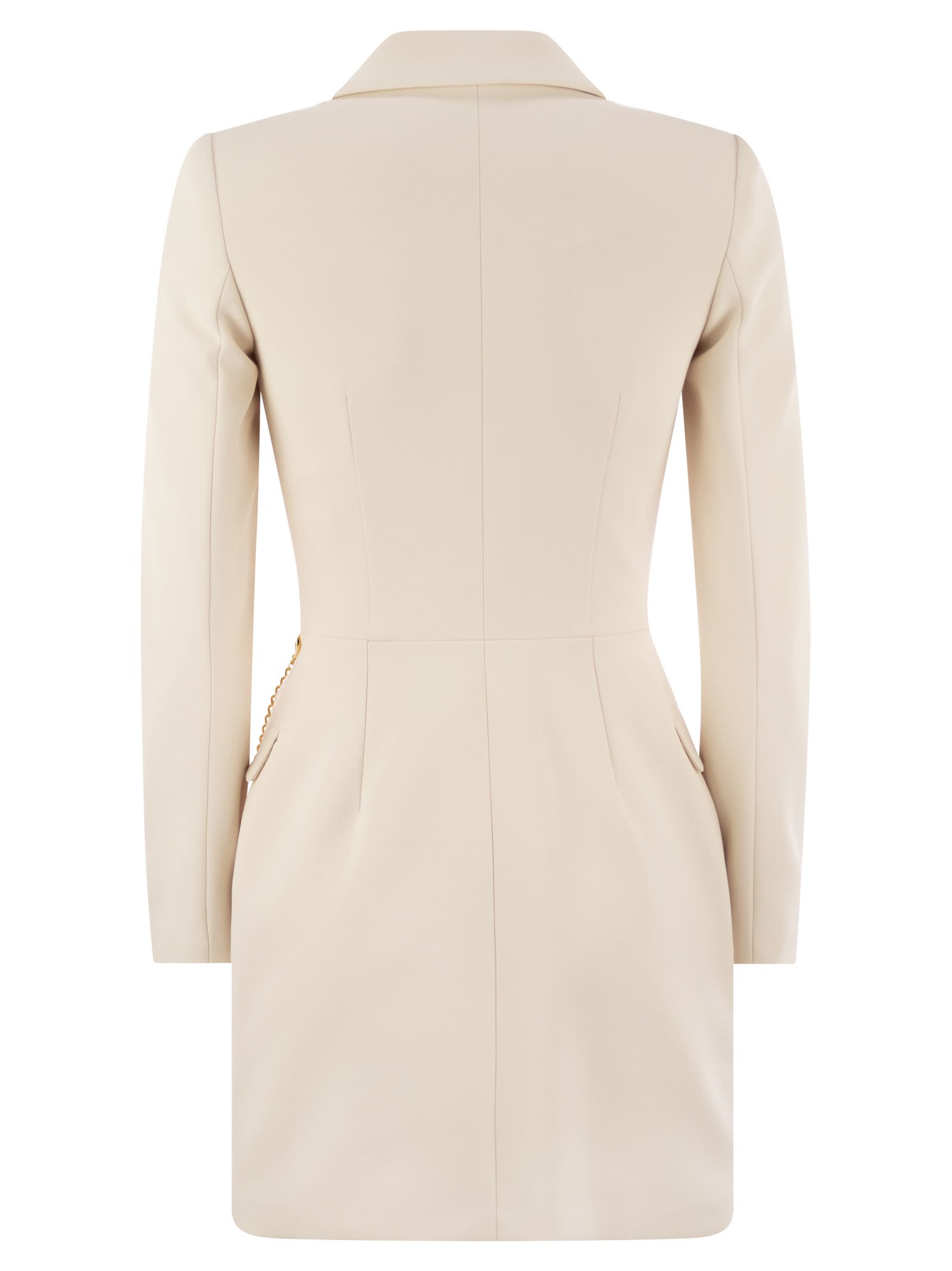 Stretch crepe double-breasted robe manteau with peaked lapels and long sleeves. The waist is emphasised by a threaded chain belt and gold metal logo charms. - Monogram satin lining - Gold metal buttons and accessory - Slim fit DESIGNER ID: AB65746E2 193